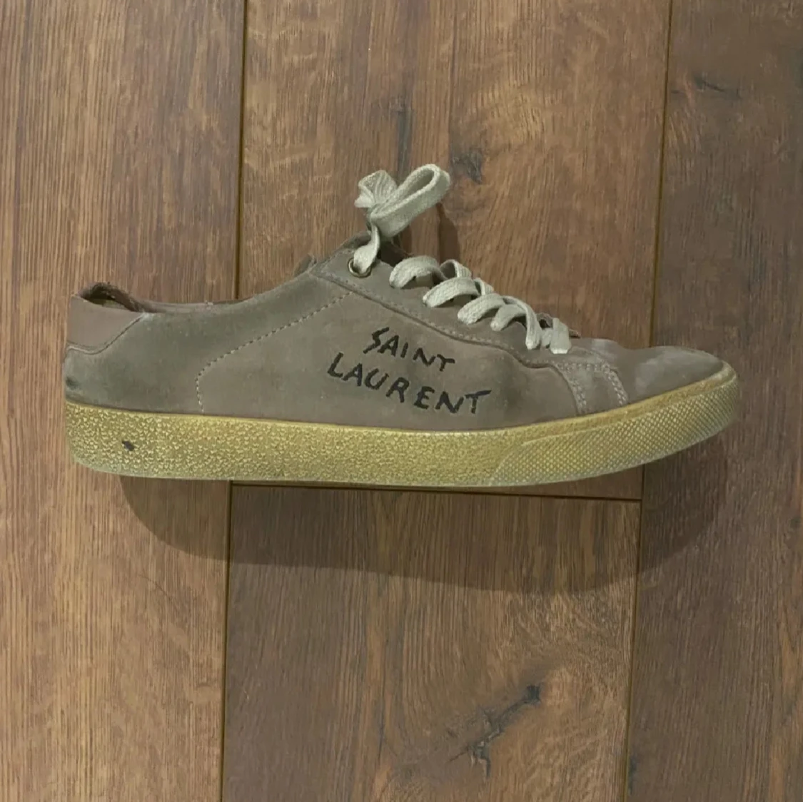 Snygga sneakers från Saint Laurent i beige/brunaktig mocka.