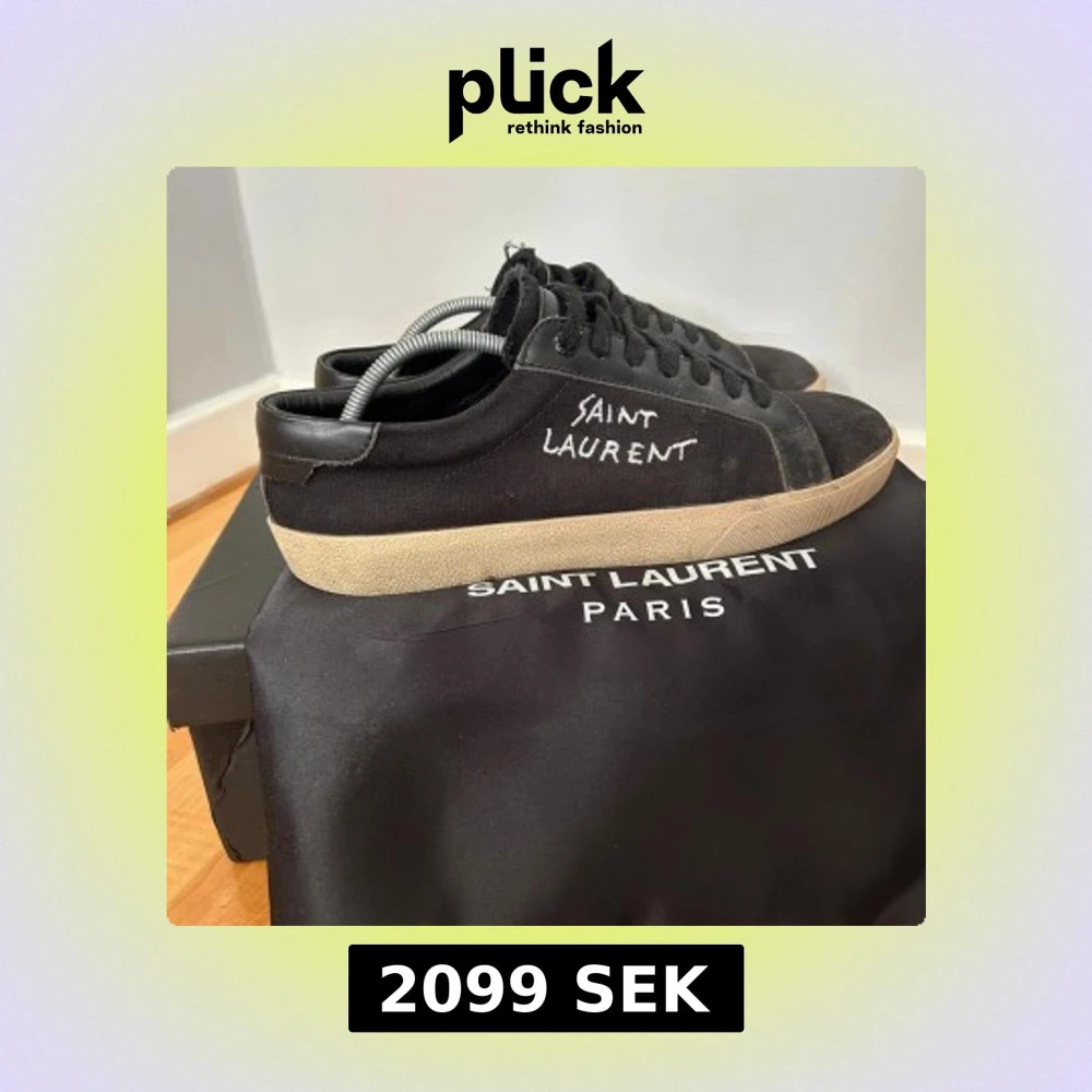 Svarta sneakers från Saint Laurent med handskriven logga på sidan. Skorna är i bra skick men man ser att dem är använda, allt og ingår, storlek 41, pris fråga gärna om fler bilder eller diskutera priset!🤝🏻
