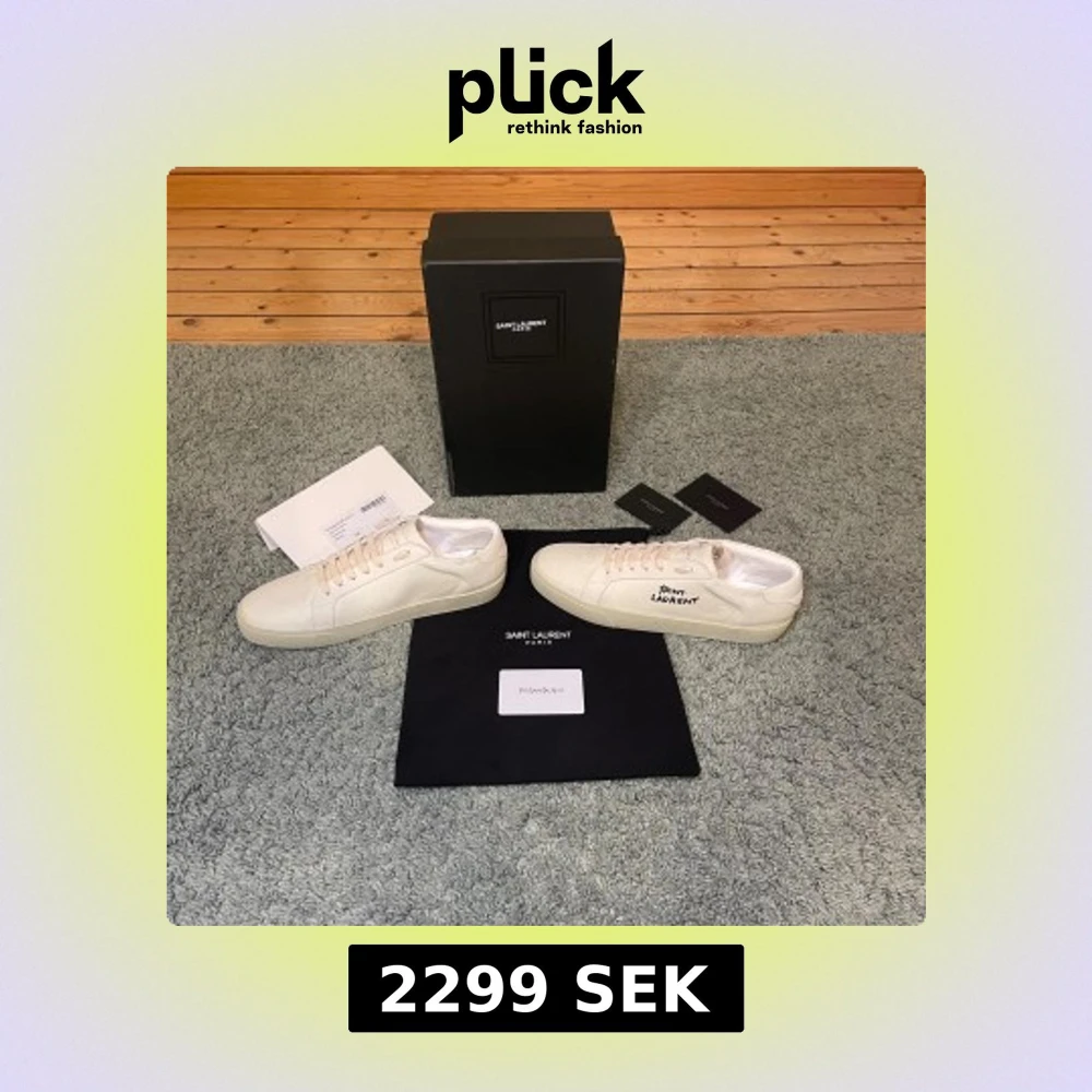 Snygga vita sneakers från Saint Laurent med handskriven logga på sidan. Allt orginal medföljer. Skorna är i storlek 44 och de är helt oanvända.