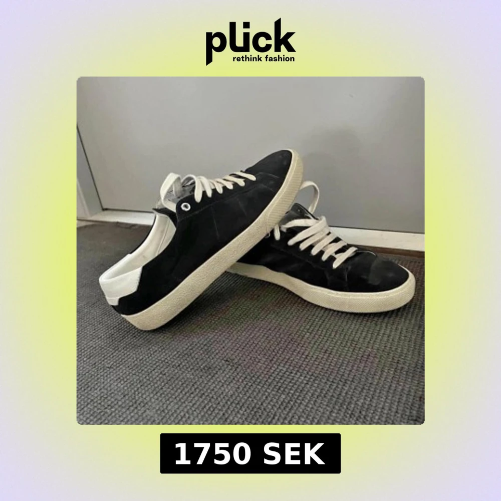 Snygga svarta sneakers från Saint Laurent med vit sula och vita snören. Skorna har en stilren design med Saint Laurent-logga på plösen. Perfekta för en trendig look, storlek 43