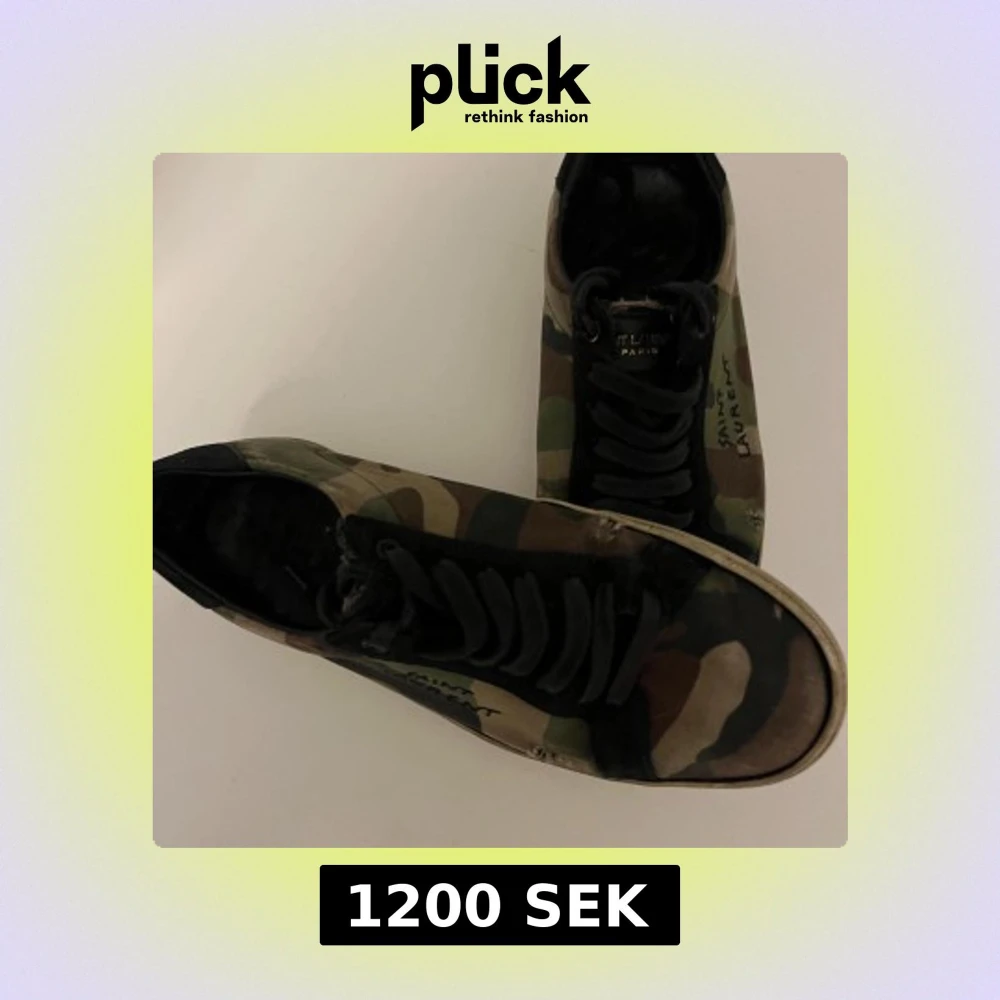 Äkta Saint Laurent skor. De är camo mönster och otroligt feta. Perfekta till vintern eftersom att de smälter in lite med årstiden. Storlek 41 men passar som 42. Priset går att diskuteras. Inga oseriösa köpare tack😁.
