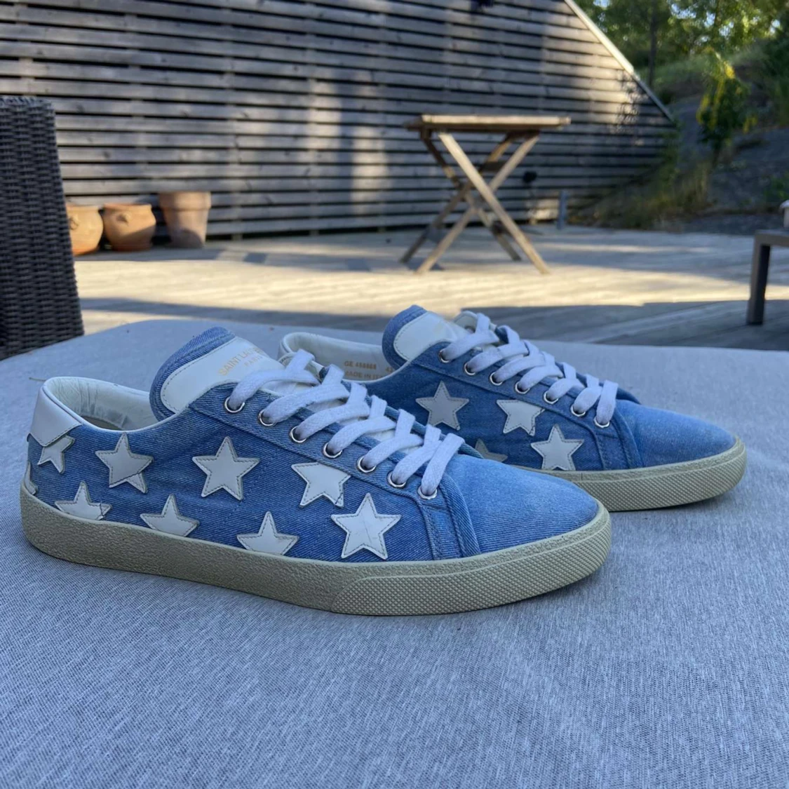 Säljer mina sjukt sällsynta och eftertraktade Saint Laurent skor som blir perfekta till sommaren. Skorna är sparsamt använda och i grymt skick. -Storlek 43-44 -kondition 9/10. Hör av vid minsta fundering.