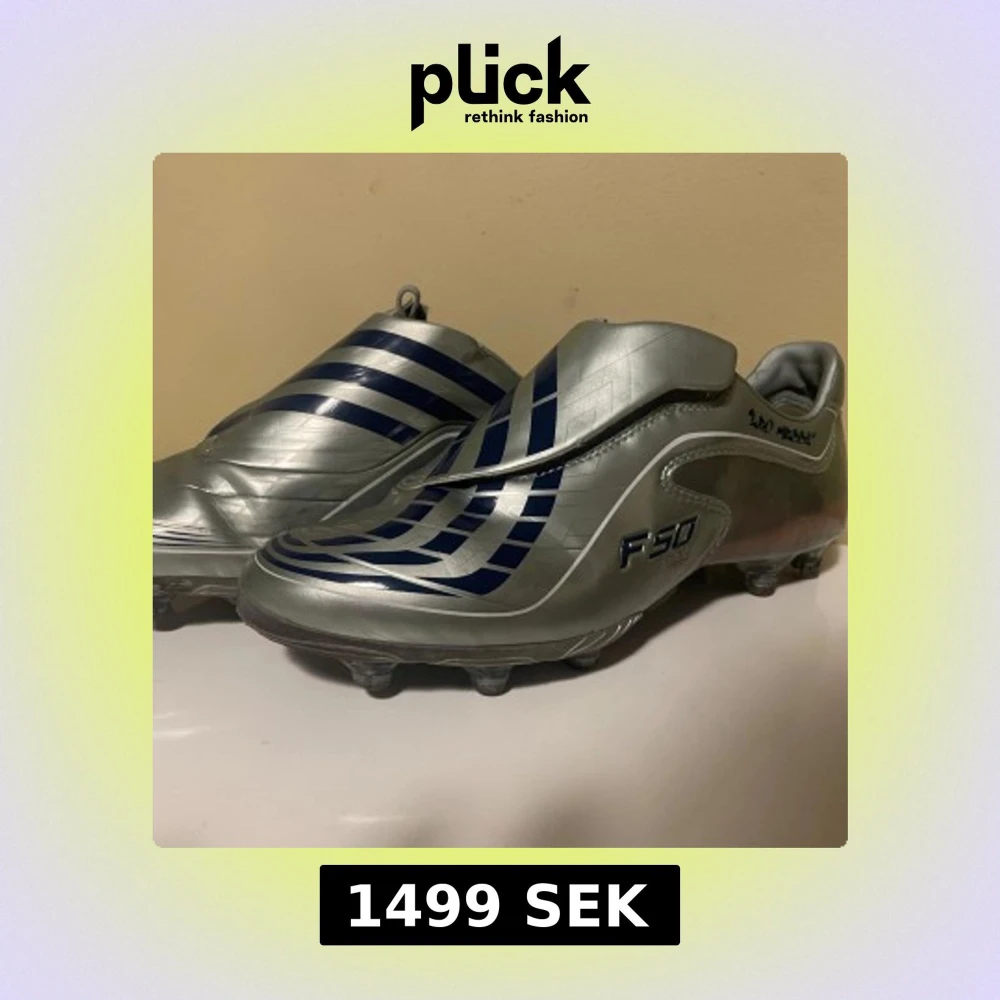 Adidas sällsynta F50 fotbollsskor i silverfärg med mörkblå detaljer i storlek 42 2/3. De kommer med nya utbytbara dobbar och verktyg för justering. Både plast och metalldobbar, för konstgräs och gräsplaner! Skorna är använda men i mycket bra sick (se bilder). Hör av dig vid eventuella frågor!