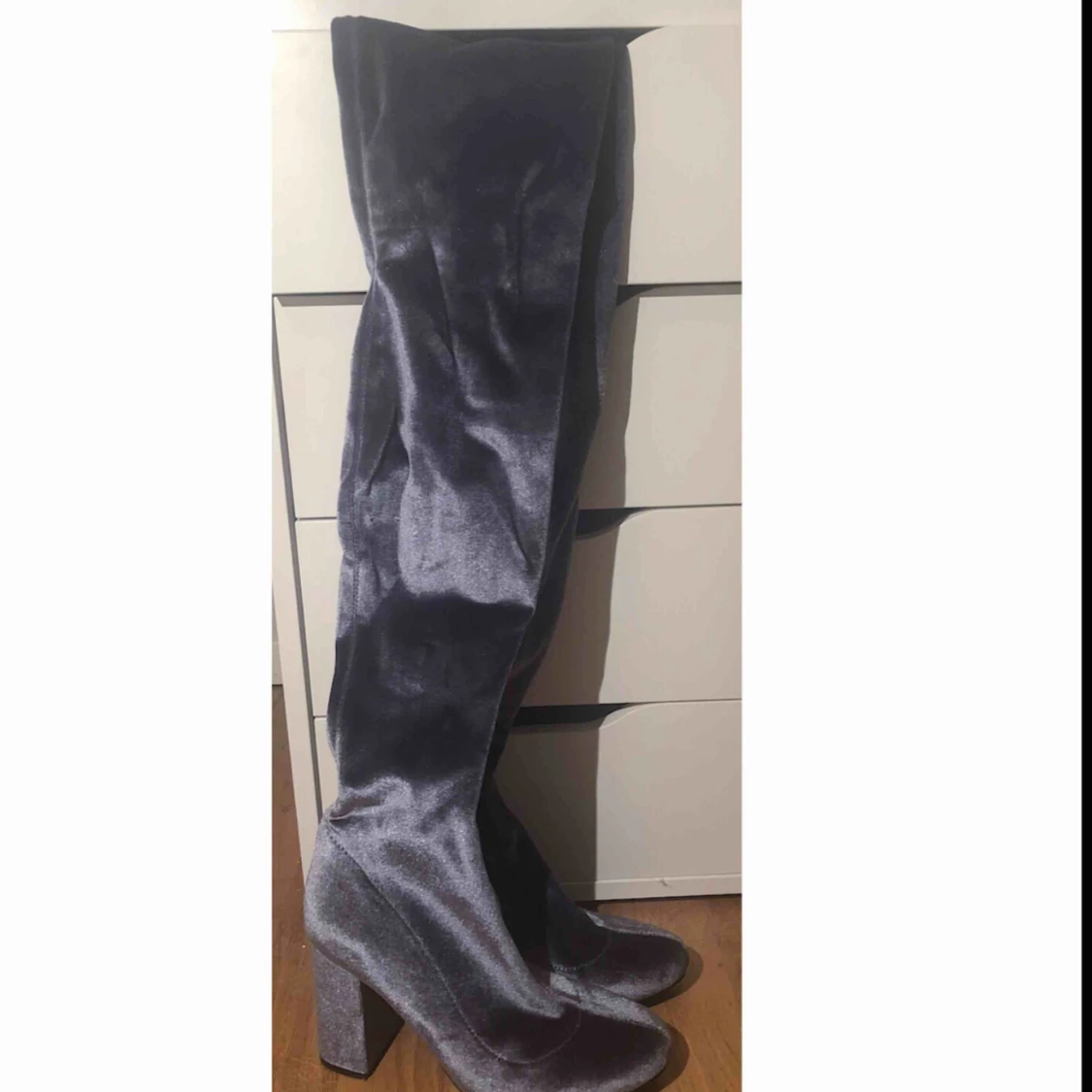 Over knee stövlar i sammet blå/grå från Nelly Aldrig använda, bara provat