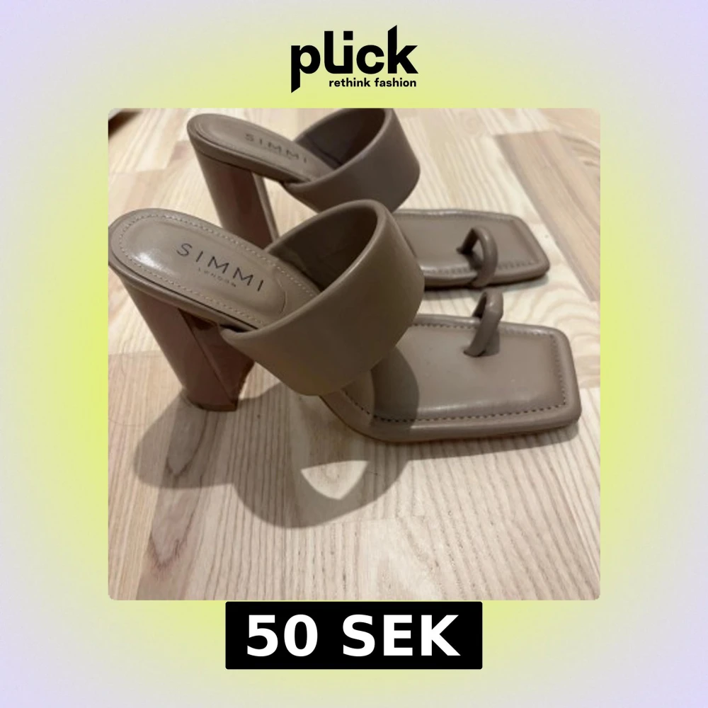 Trendiga beige sandaler från Simmi London med fyrkantig tå, bred rem och tårem. Skorna har hög blockklack på ca 10cm. Storlek 40.