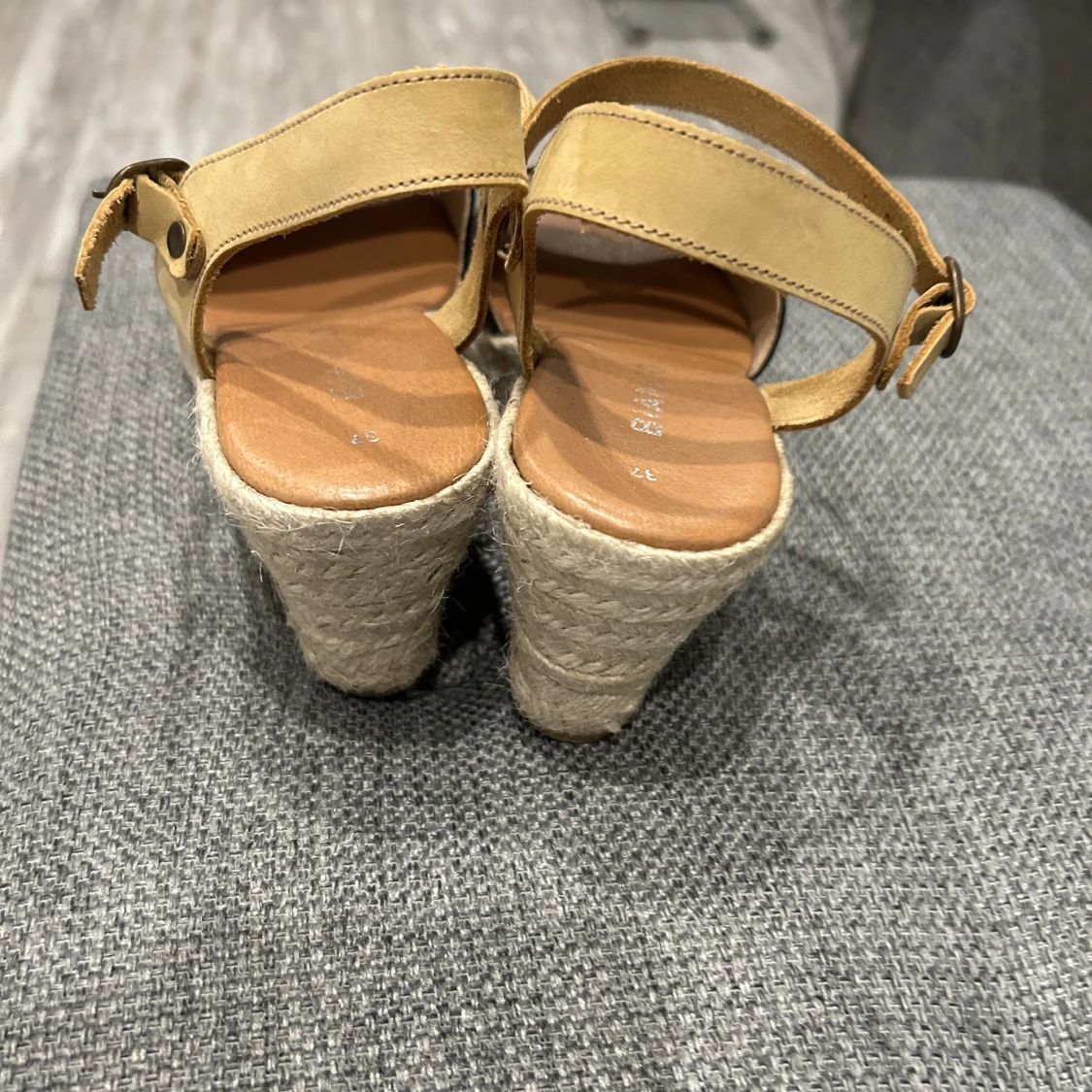 Skor Biadara från Bianco använd bara två gånger. Bekväm och lätt att gå med. Normal i storlek och i mycket bra skick. Kostar 899 kr i ordinarie pris. Ovandel i äkta läder. Kkackhöjd 7 cm och platåhöjd 2 cm.