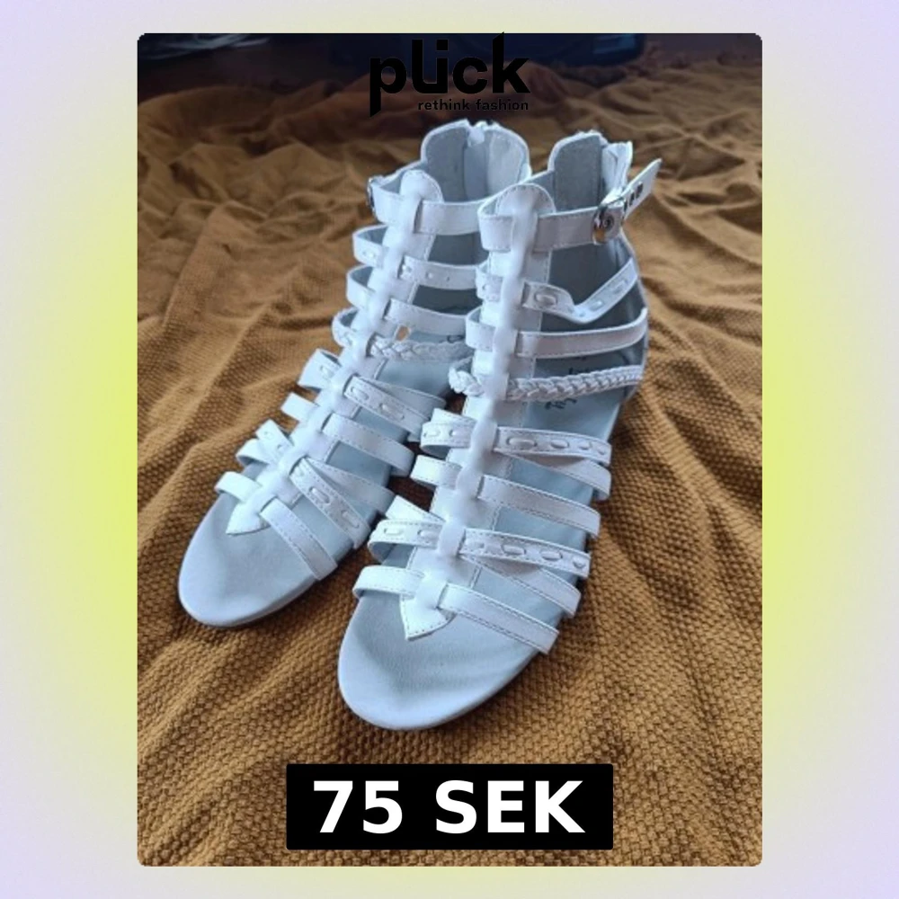 Skor i sandalmodell, använda en gång främst innomhus. Mycket bra skick något till tryckta men inget som syns när man har dem på sig.
