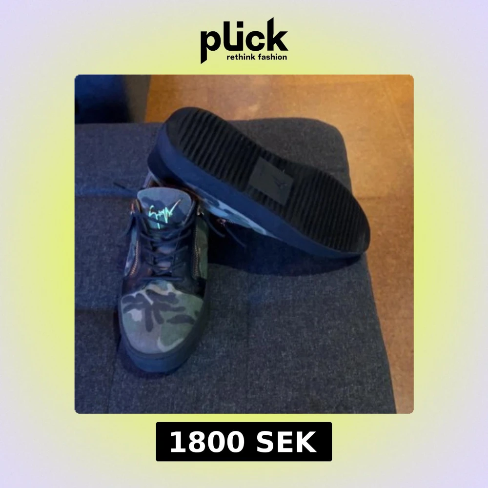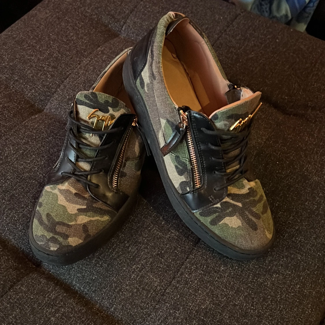 Snygga sneakers med camouflage-mönster och svarta detaljer. Skorna har både snörning och dragkedja för en cool look. Perfekta för en avslappnad stil. Sparsamt använda fåtal gånger