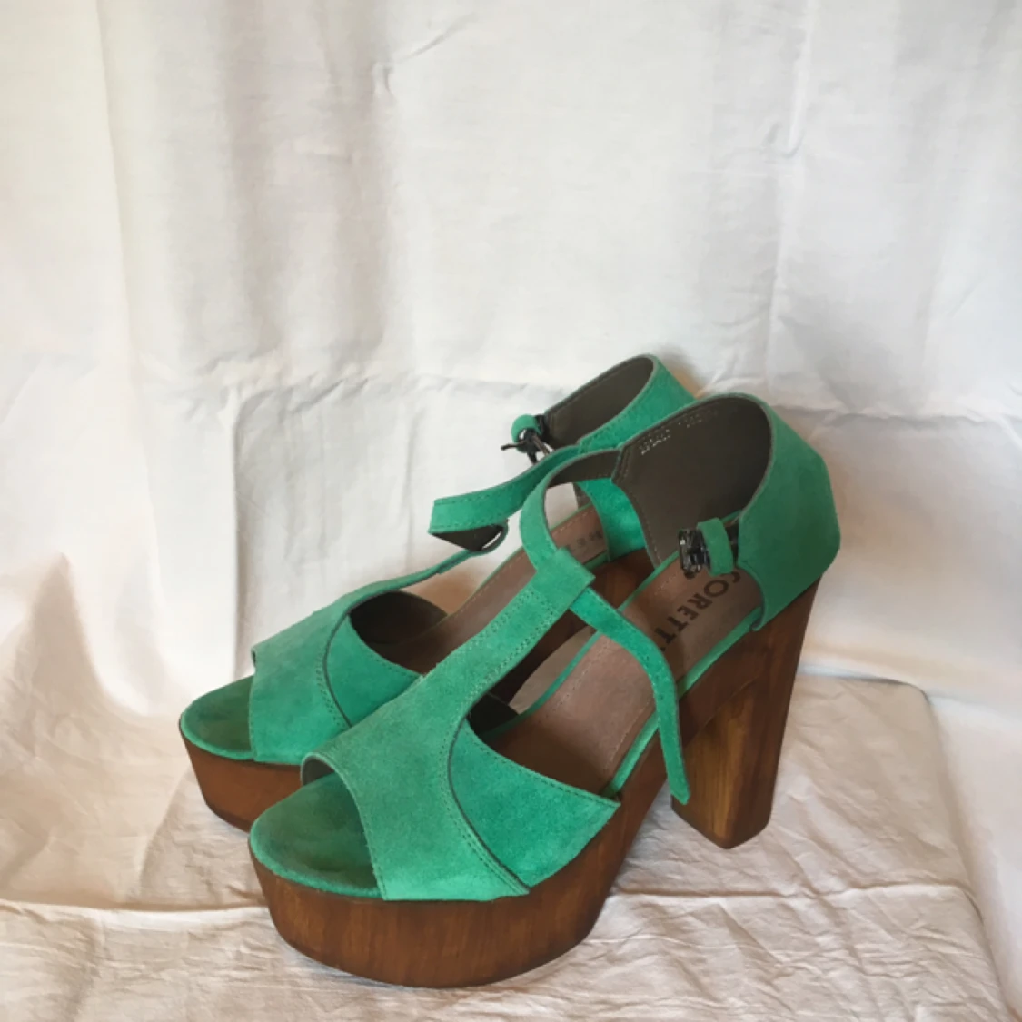 Fräscha klackar med platå från Scorett, använda 3 ggr. Nästan nyskick förutom liten repa på varsin klack. Säljes pga kan ej använda klackar längre. Nypris 800 Ca 13-14 cm hög klack.