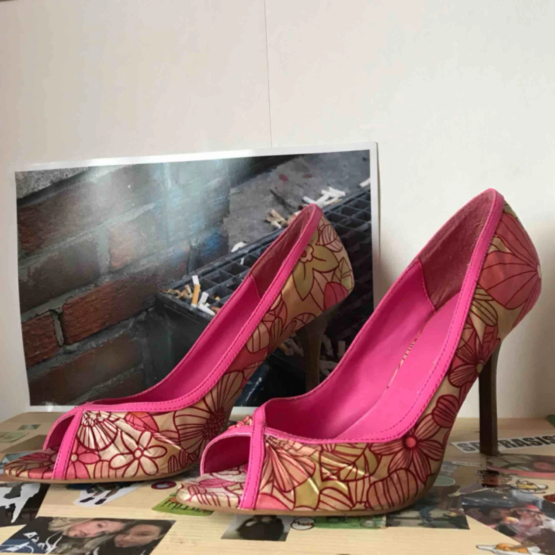 Super snygga rosa klackar med ett blommigt mönster. Storlek 9. Möts upp i Sthlm o Örebro. Köparen står för frakten💕