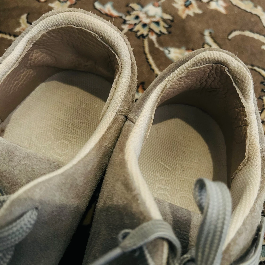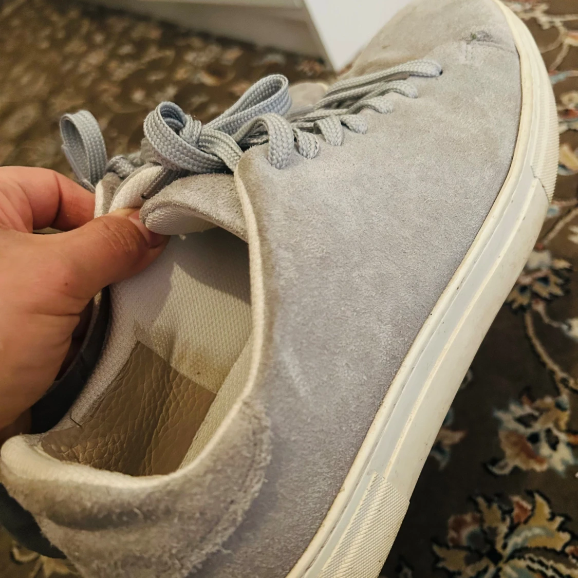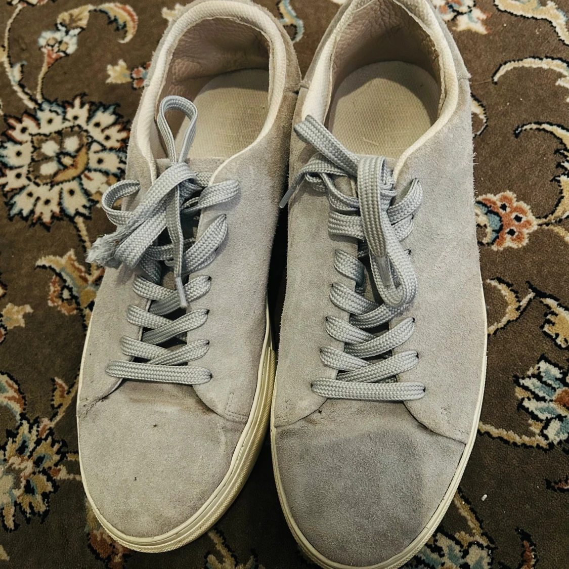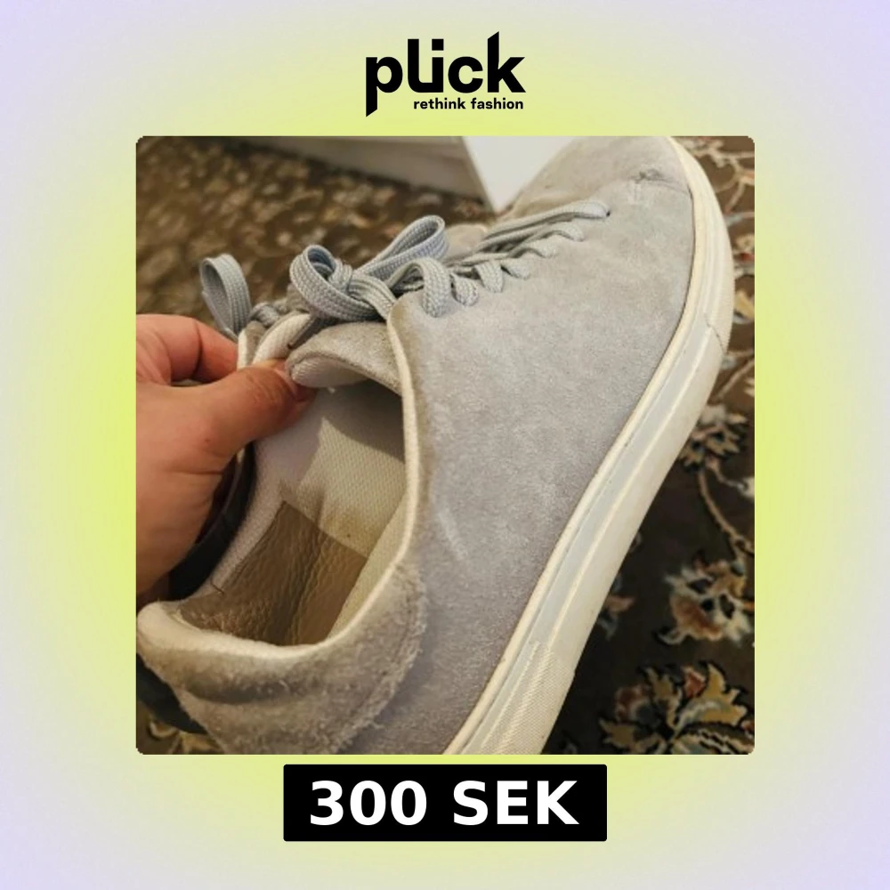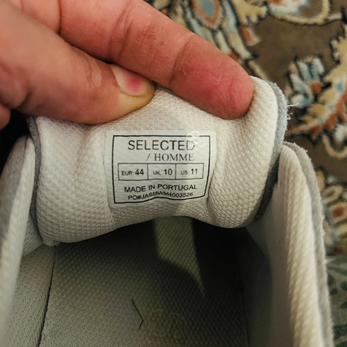 Snygga ljusgrå sneakers från Selected Homme i mocka med vita sulor och klassisk snörning. Skorna har en stilren och minimalistisk design med rund tå och platt sula, perfekta för en clean look. Tillverkade i Portugal.