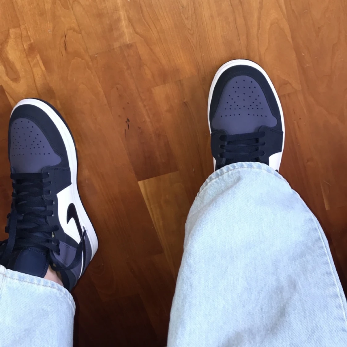 Superfräsha jordan 1 mid sanded purple/obsidan! Nästintill oanvända och ser fortfarande som nya ut🔥Färgerna är lila, mörkblå och vit✨Köpta på GOAT så de är verifierade äkta!!! Storlek 41! Buda ifrån 1000kr då dem är helt som nya! (Andra bilden är min egen bild på skorna) Låda finns till, bara att be om fler bilder☺️HÖGSTA BUDET ÄR NU PÅ 1600