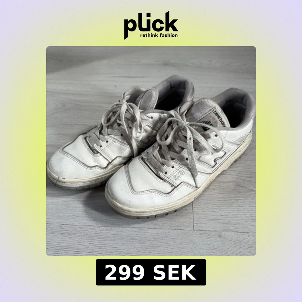 Säljer ett par klassiska New Balance 550 sneakers i vitt med grå detaljer. Skorna har en chunky siluett, snörning och platt sula. Ovandelen är i skinn och mesh för en sportig vibe. Perfekta för dig som gillar retrostil och streetwear.