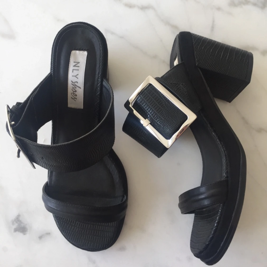 Sandaletter från Nelly.com med 6 Cm klack och spänne över foten. I fin skicka så de endast är använda 2 gånger. Köparen betalar ev frakt✨