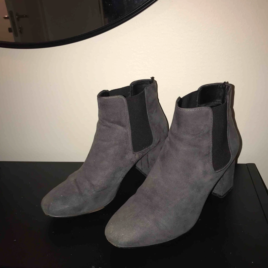 Gråa skor från HM, använda relativt mycket för ca 1-2 år sedan. Kan mötas upp i Stockholm, kan även skickas via post. Köparen står för frakten