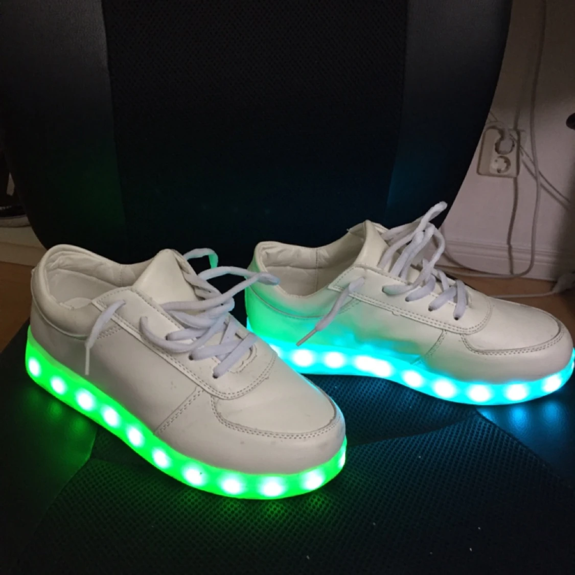Blinkande skor, blinkar i nio olika färger. Använda 2 ggr. Nypris 399kr + frakt. Det är en 39:a men passar mer som en 38:a!