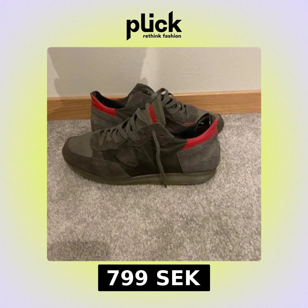 Snygga sneakers i grått och rött med snörning. Skorna har en stilren design med en kombination av mocka och syntetmaterial. Perfekta för en avslappnad stil.