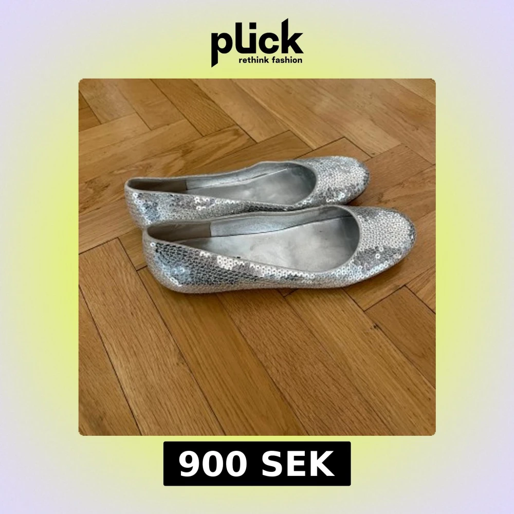 Säljer ett par glittriga ballerinaskor från Bally i silver med paljetter över hela skon. Skorna har rund tå och platt sula, perfekta för dig som vill sticka ut lite extra. Supersnygga till både jeans och klänning!