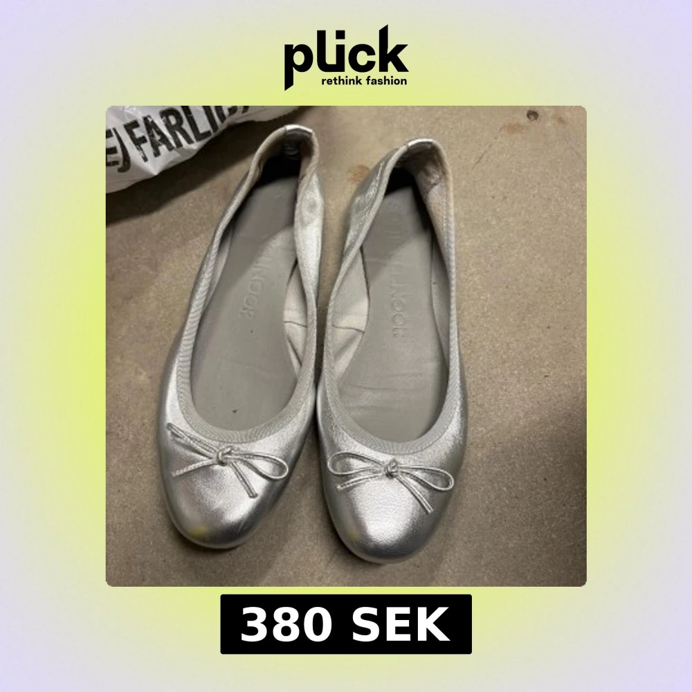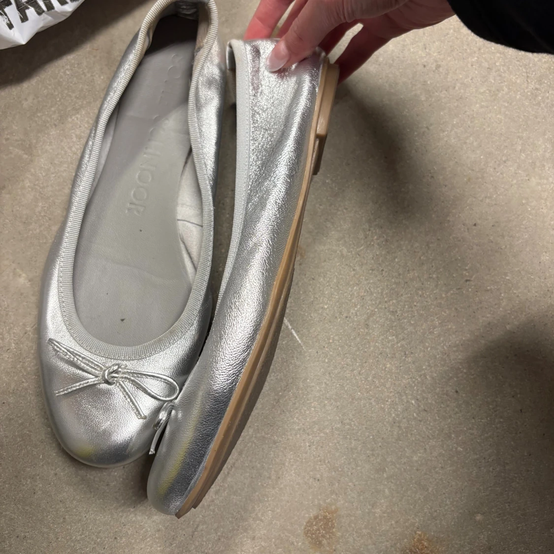 Snygga ballerinaskor i metallic-silver, nypris var runt 1000kr storlek 39, bara använt någon gång