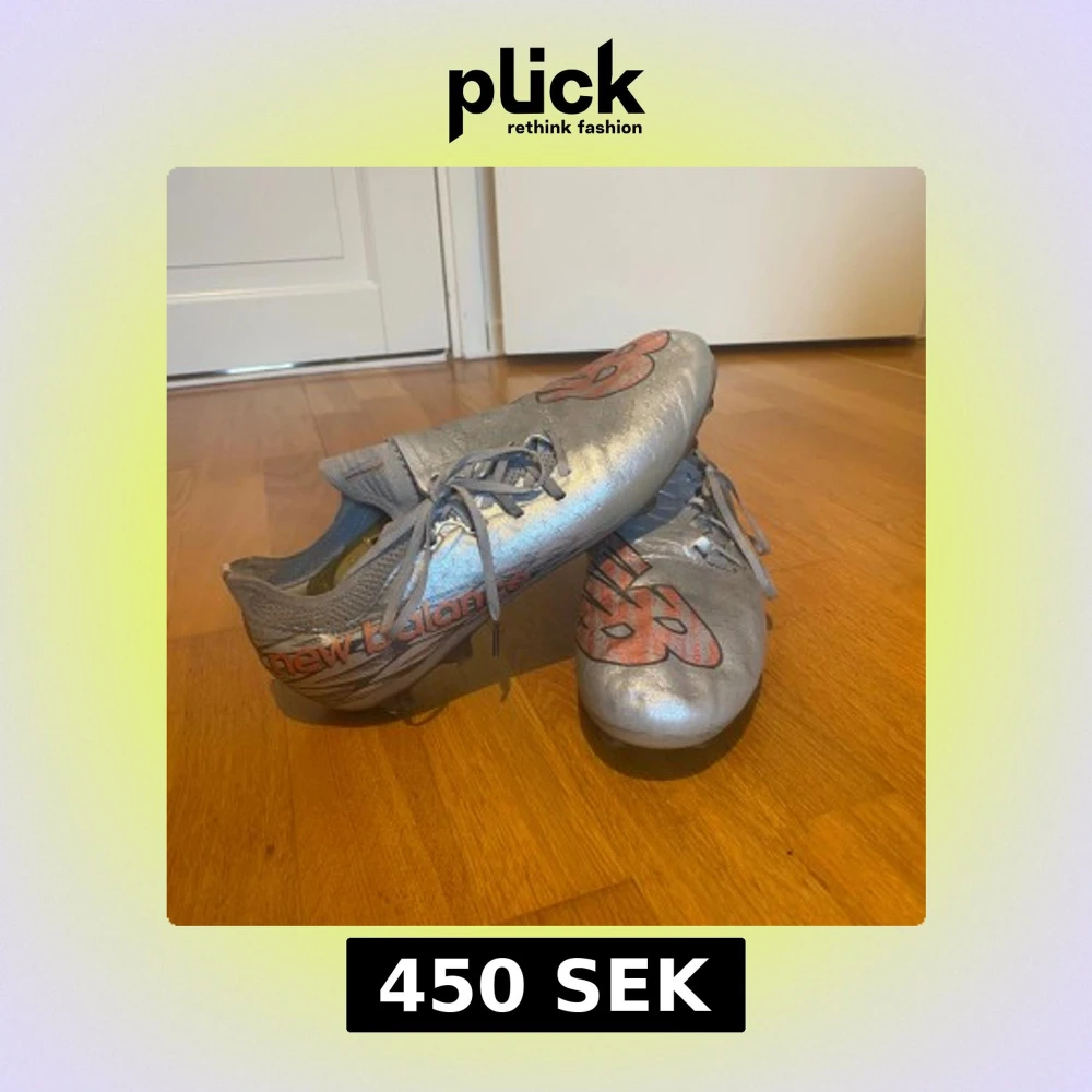 Säljer ett par fotbollsskor från New Balance i metallic silver. Storlek 44