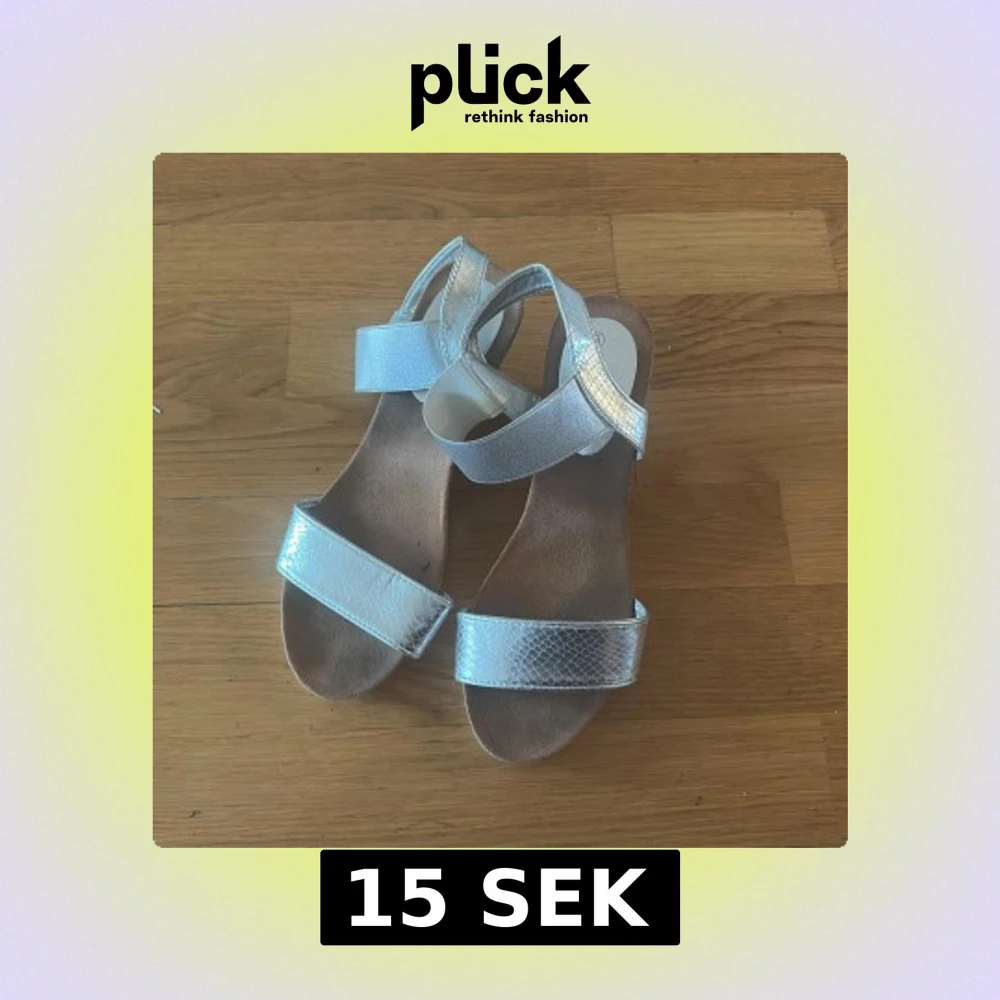 Snygga sandaler i metallic-silver med breda remmar och strukturmönster. Klacken är i kork och ger en cool kontrast till det glittriga materialet. Remmarna har kardborre för enkel påtagning. Perfekta för dig som vill sticka ut lite extra.