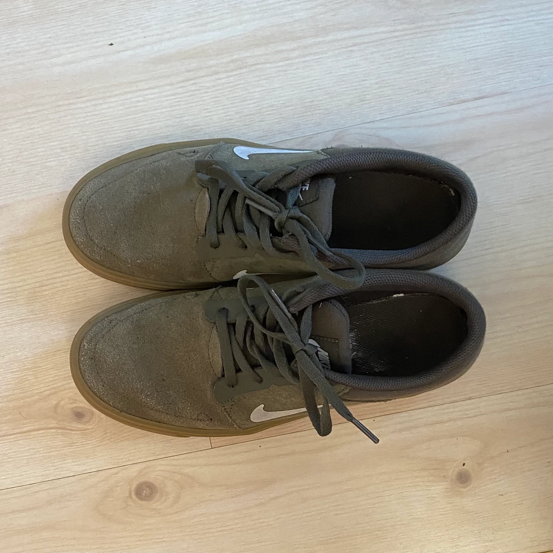 Olivgröna Nike SB skor med bruna sulor i storlek 40 (25 cm). Har använt två-tre gånger, utmärkt skick. Köpte för typ 500 kr.