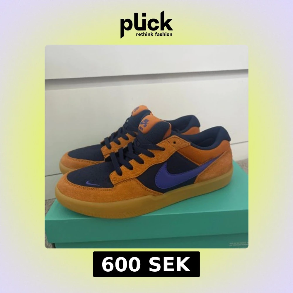 Nike SB Force 58 sneakers i färgen Monarch/Persian Violet. Skorna har en snygg kombination av orange mocka och mörkblå textil med lila swoosh och detaljer. Perfekta för dig som gillar streetstyle och skate.