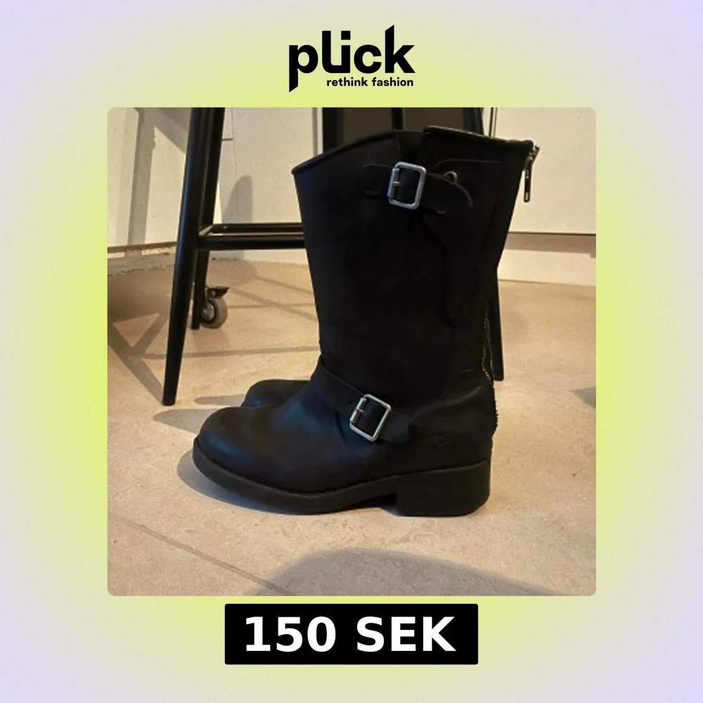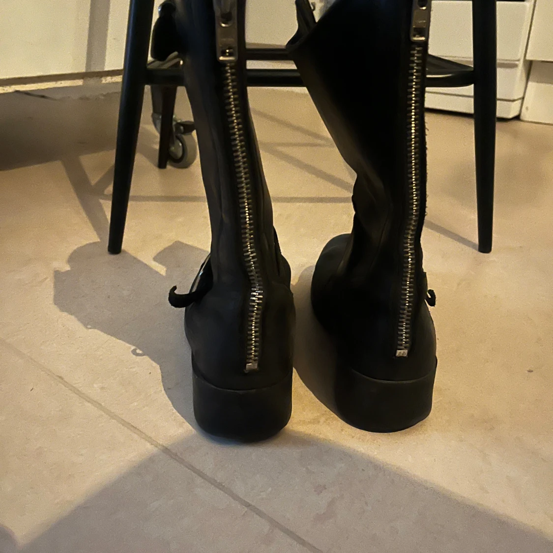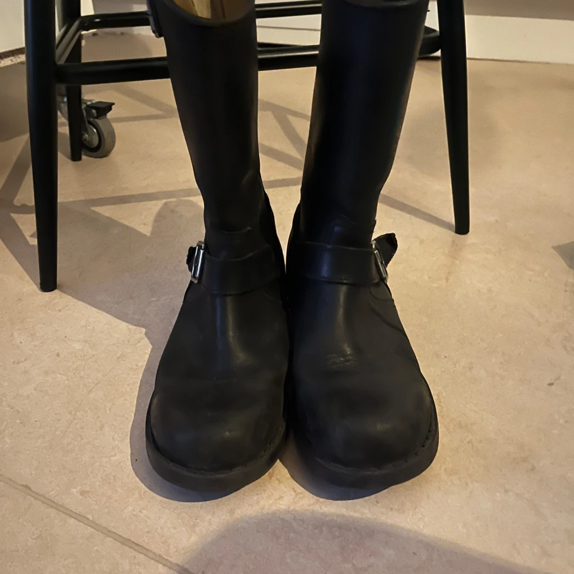 Johnny Bulls Snygga svarta boots i skinn med robusta spännen och dragkedja baktill.