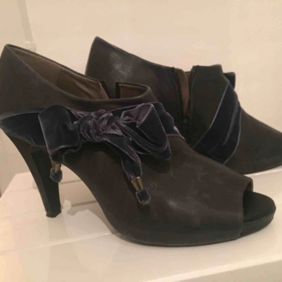 Mjukastes skinn jag känt på skor, ever! Platå fram 1-1,5cm klack innermått 8cm ytter 10cm. Blå med sammetsrosett