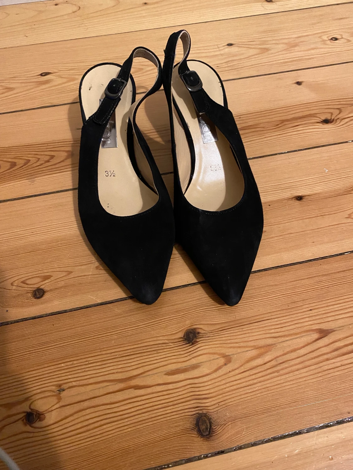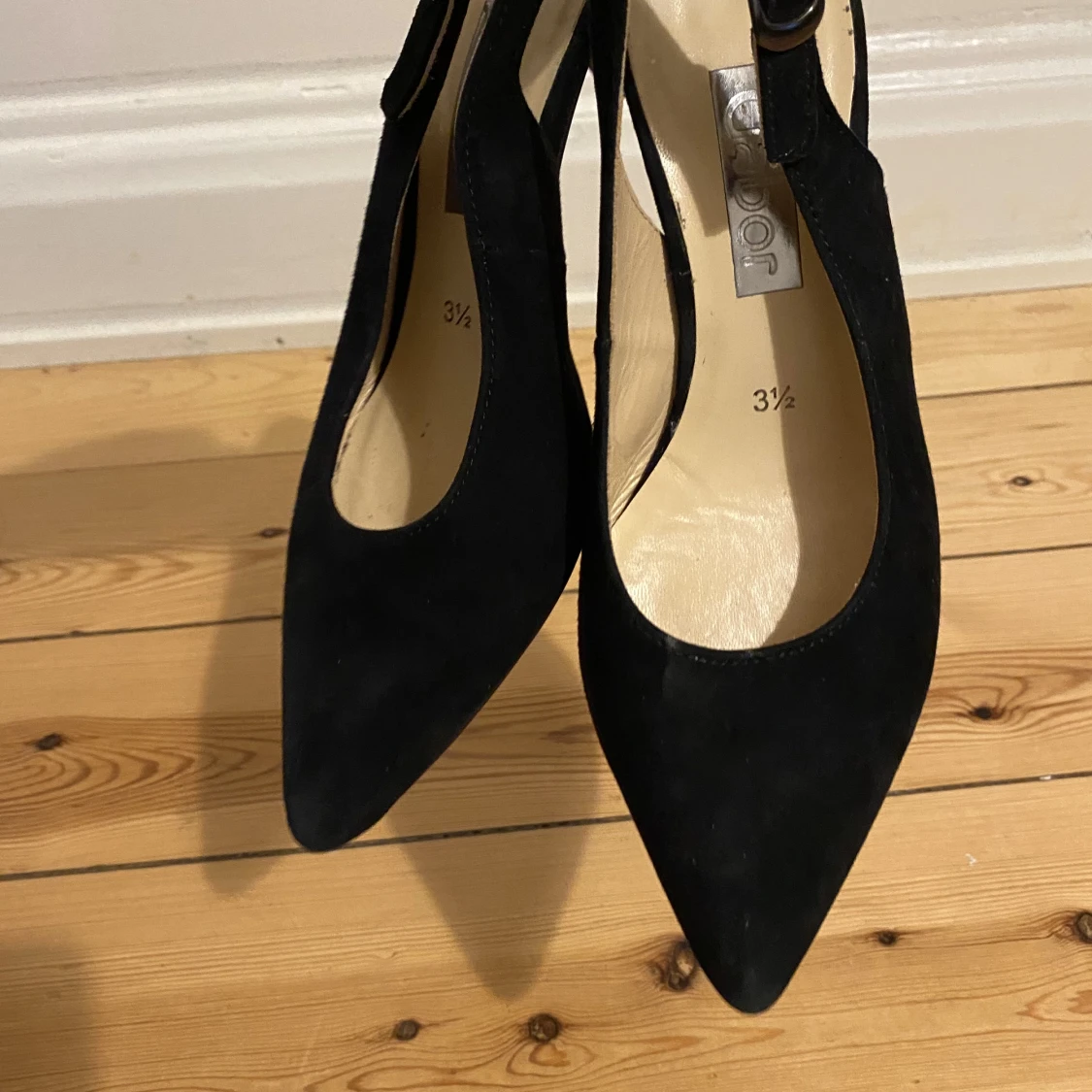 Svarta slingbacks från Gabor storlek 36. Använd endast ett fåtal gånger, väl omhändertagna. Äkta mockaläder.