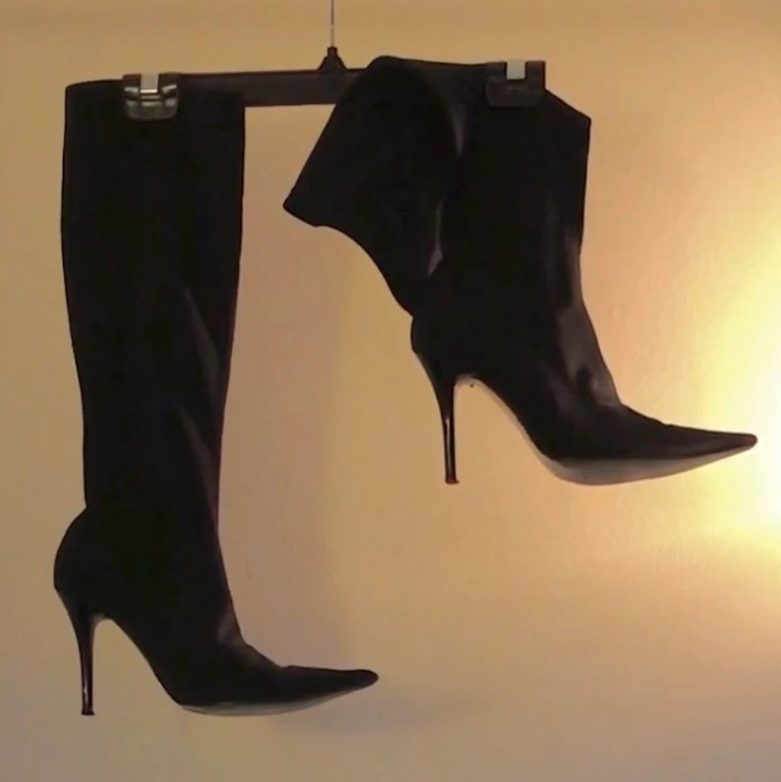Knee high heels in size 37. Never used, purchased at Humana a few years ago. Small fault on each side of the shoes but nothing noticeable.