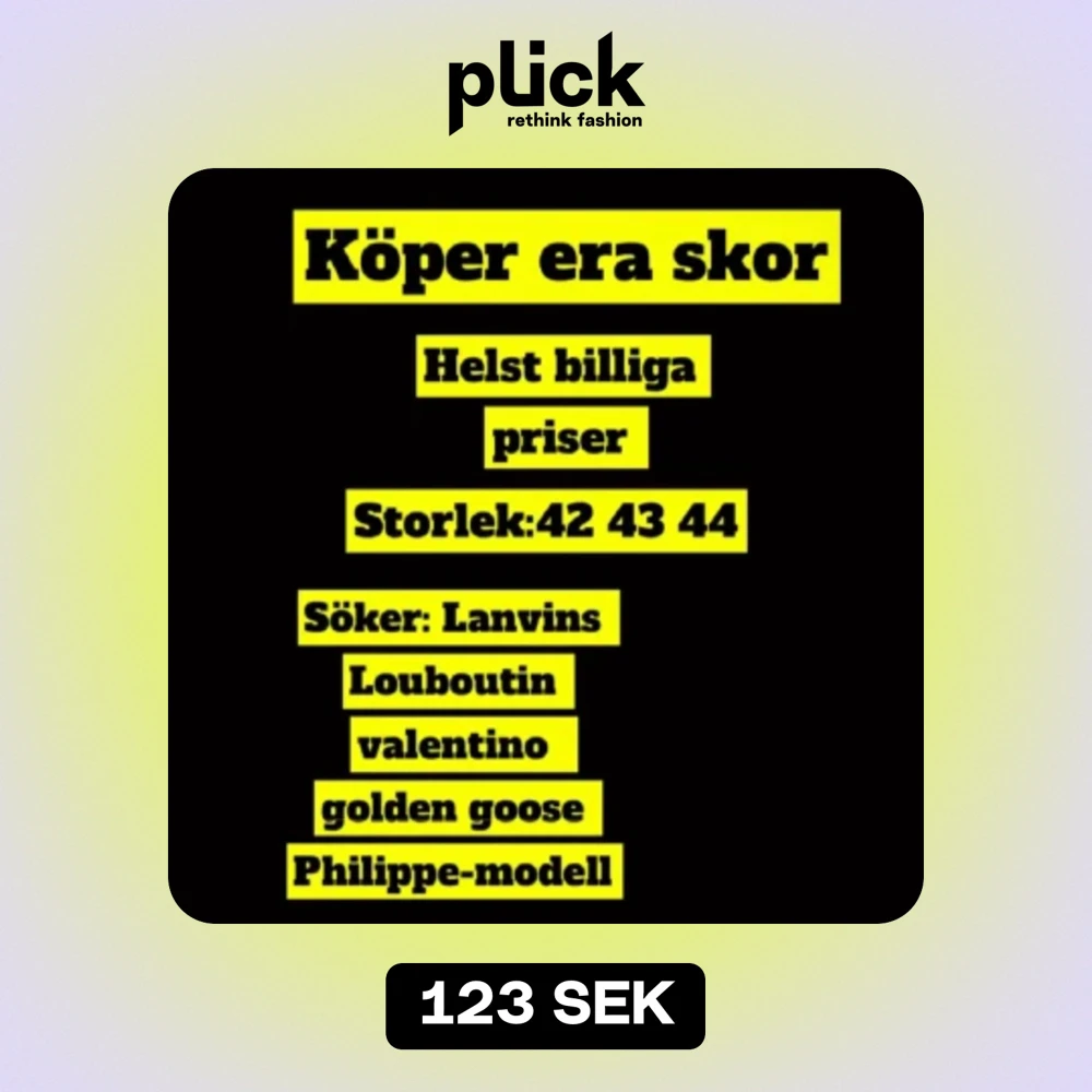 Söker lanvins, Philippe modelle, loubs osv till bra pris, inga fantasipriser. Jag har storlek 43