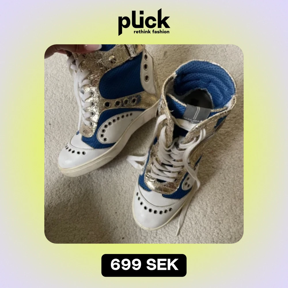 isabelmarant liknande skor med inbyggd klack! Snygga i både guld, vit och blått! Från Baldan, köpta nypris är ca 5000kr, sällan använda se bild 3 för defekter. 🩷