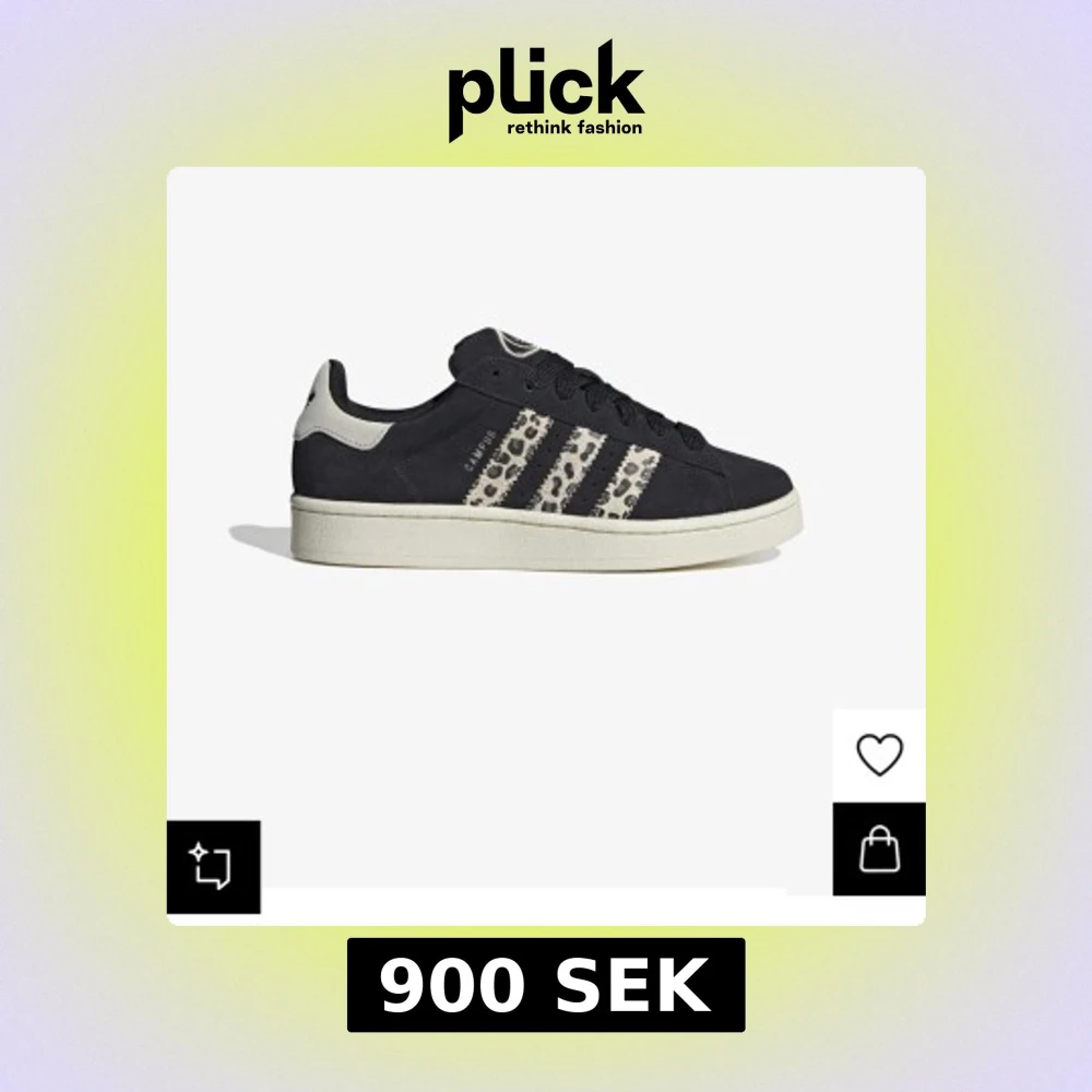 Snygga svarta Adidas Campus sneakers med leopardmönstrade detaljer på de tre ränderna. Kom prov för egna bilder 💕Kan tänka mig att sänka priset så skriv privat! Använda sparsamt, köpta för 3 månader för nypris alltså 1345kr på zalando💕💕