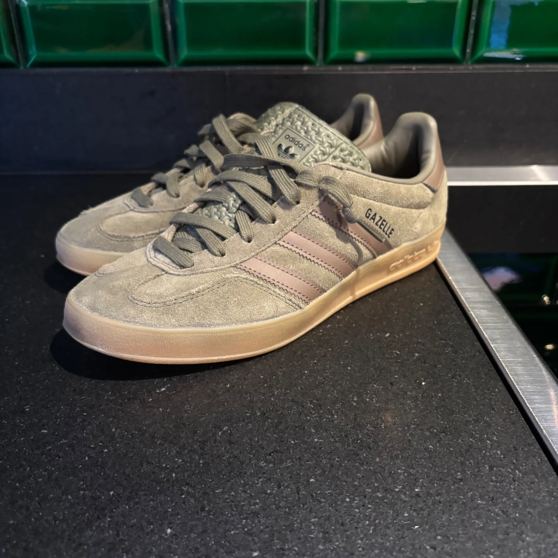 Orörda gazelle i mörkgrön färg//olive grön, väldigt unika och inte använda enbart testat fåtal gånger. Storlek 41 1/3 kvitto och box tillkommer. Skriv för frågor och funderingar. Nypris 1400-1600kr