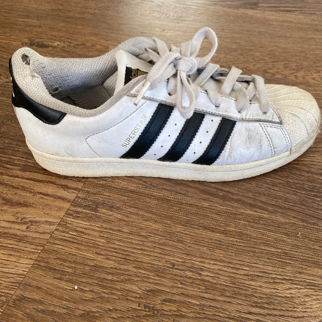 Adidas superstar storlek 38. Ganska bra skick slitna inuti och lite bak på skon.