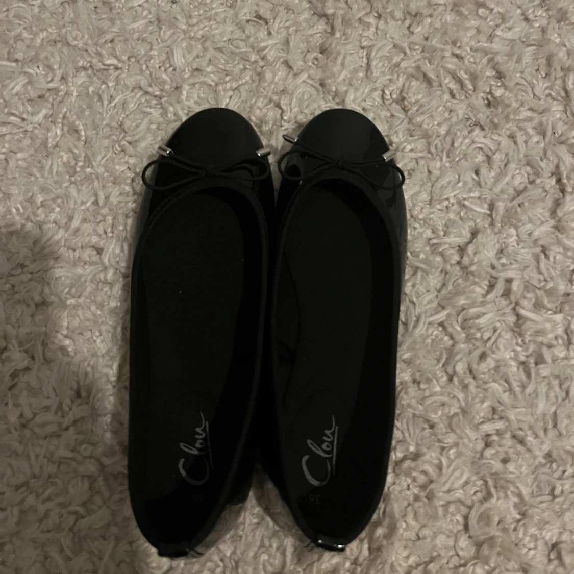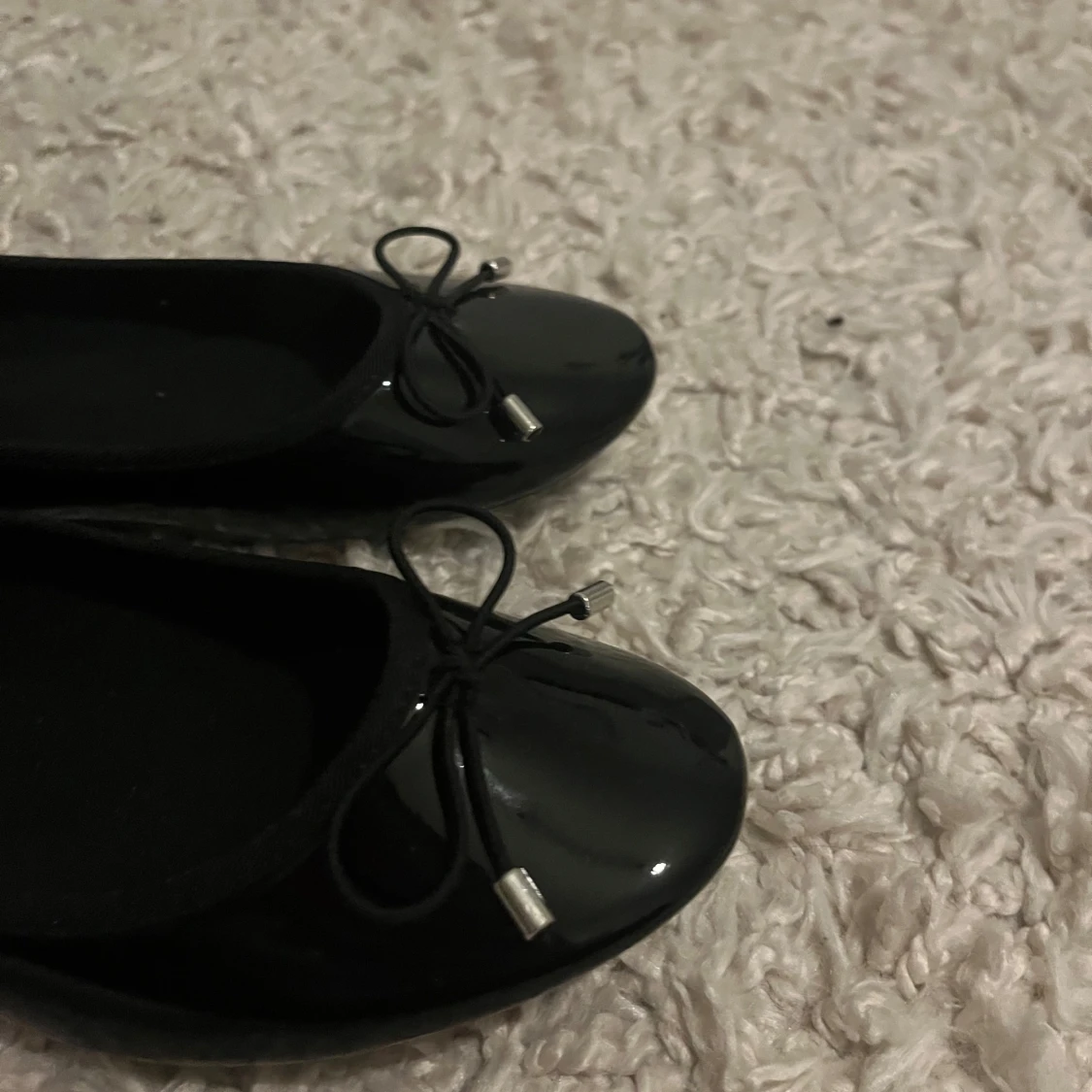 Ett par supersöta ballerinaskor i jättebra skick, aldrig använda💕säljer då dom inte har kommit till användning och inte kommer göra det! I glansigt material med rosetter vid tårna