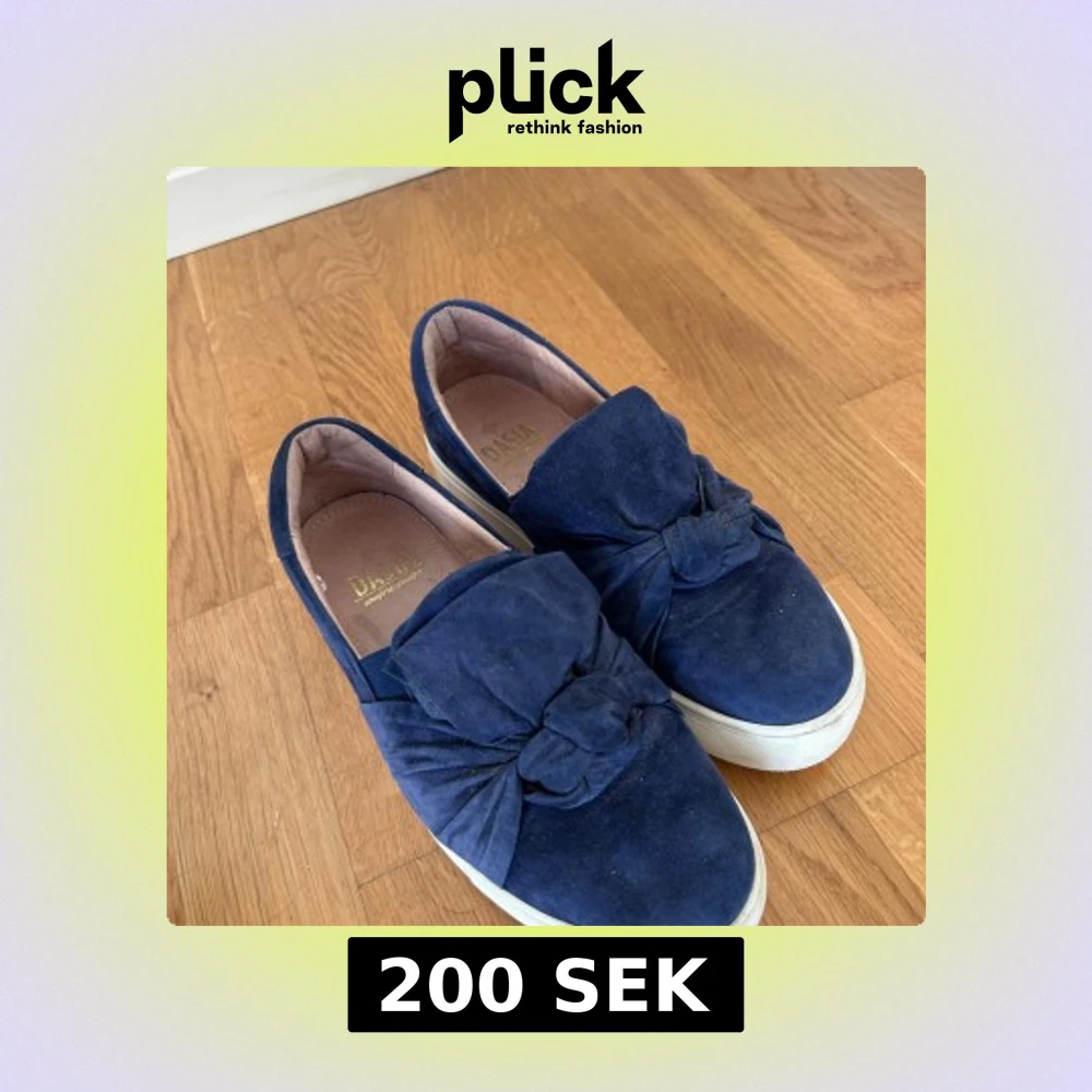 Snygga sneakers i mörkblå mocka från Dasia med bred rosettdetalj framtill och vit platt sula. Skorna har en rund tå och slip-on-modell som gör dem enkla att ta på. Perfekta för dig som vill ha en cool och bekväm stil med en twist.