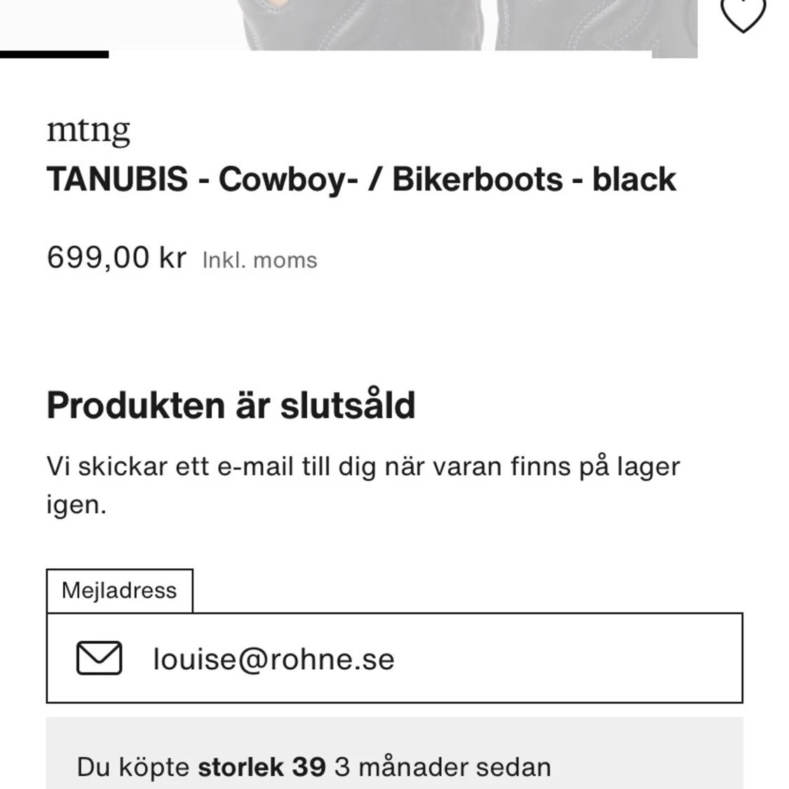 Säljer sjukt snygga svarta cowboyboots från zalando som är helt slutsålda i alla storlekar. Märket är mtng och modellen kallas Tanubis. Orginalpris är 699 kr och jag har endast använt de en gång. Säljer för 500 kr men pris kan diskuteras💗