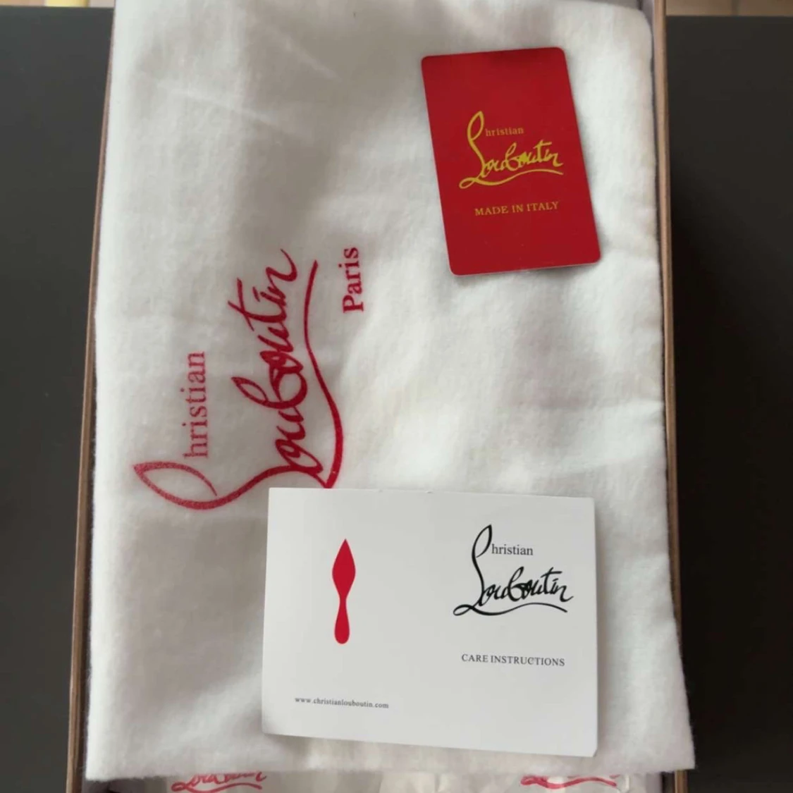 Säljer inprincip helt nya Christian Louboutin skor utan spikar, skick 10/10! Allt og ingår vid köp. Säljer då de är för små för mig och används inte. Postar inom 24 timmar! Storlek:44/45, men sitter bäst på 44. Är öppen för bud och kan sänka priset vid snabb affär!