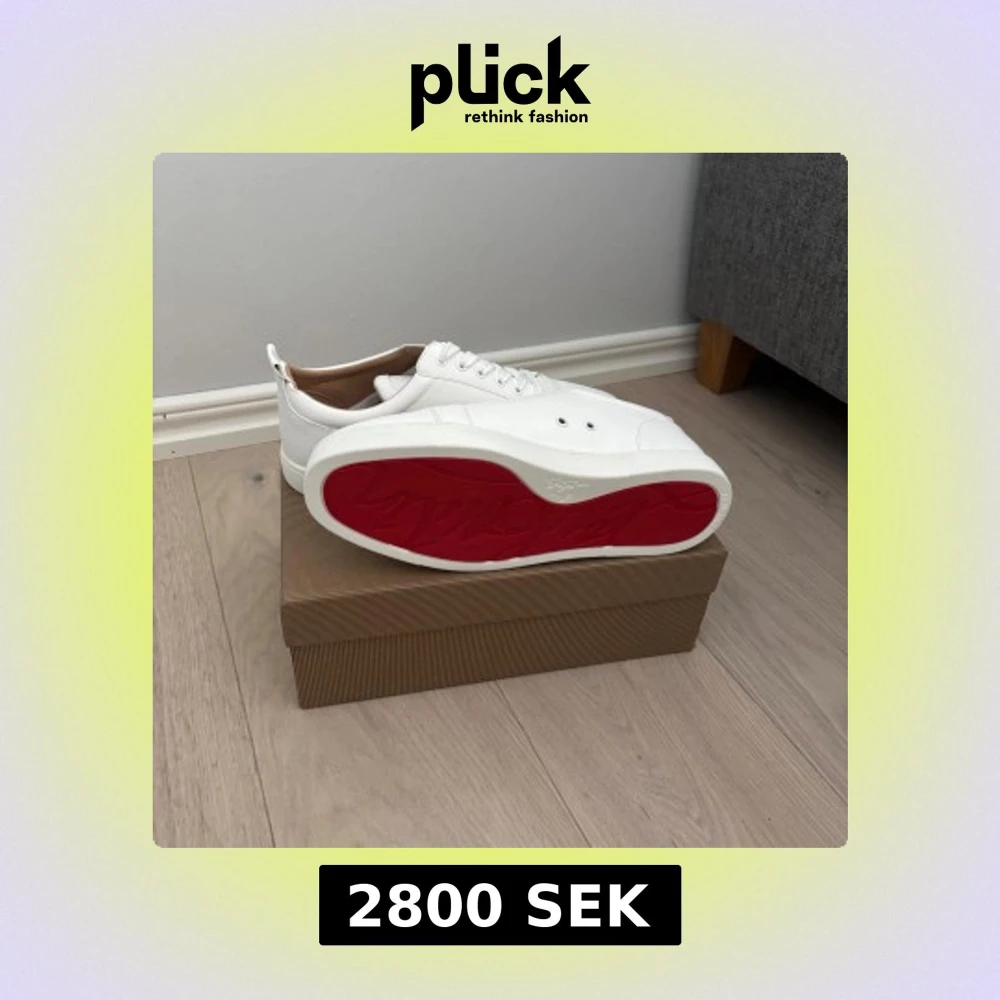 Snygga vita sneakers från Christian Louboutin med den ikoniska röda sulan. Skorna har en stilren design med snörning och är tillverkade i skinn. Perfekta för en trendig look. Pris kan diskuteras vid snabb affär, vill bara bli av med dom då de var små i storleken