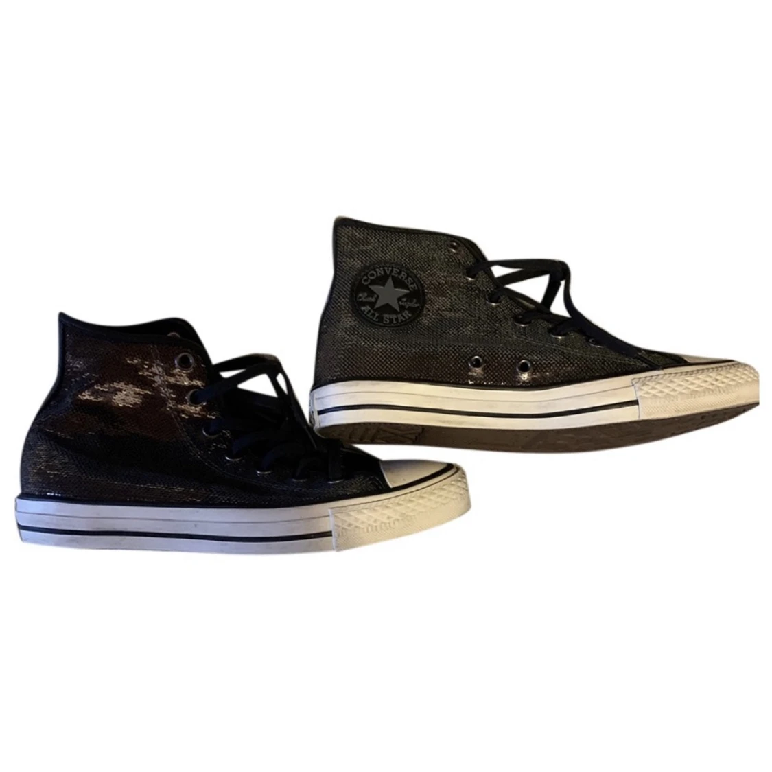 Intressekoll på ett par limited edition Converse. Svart/gråa med paljetter. I bra skick❤️