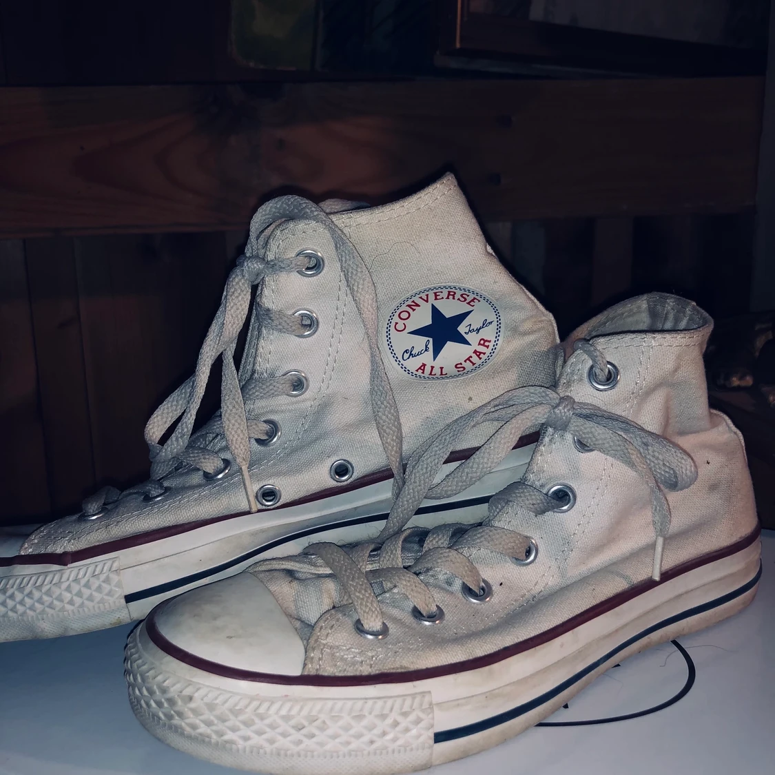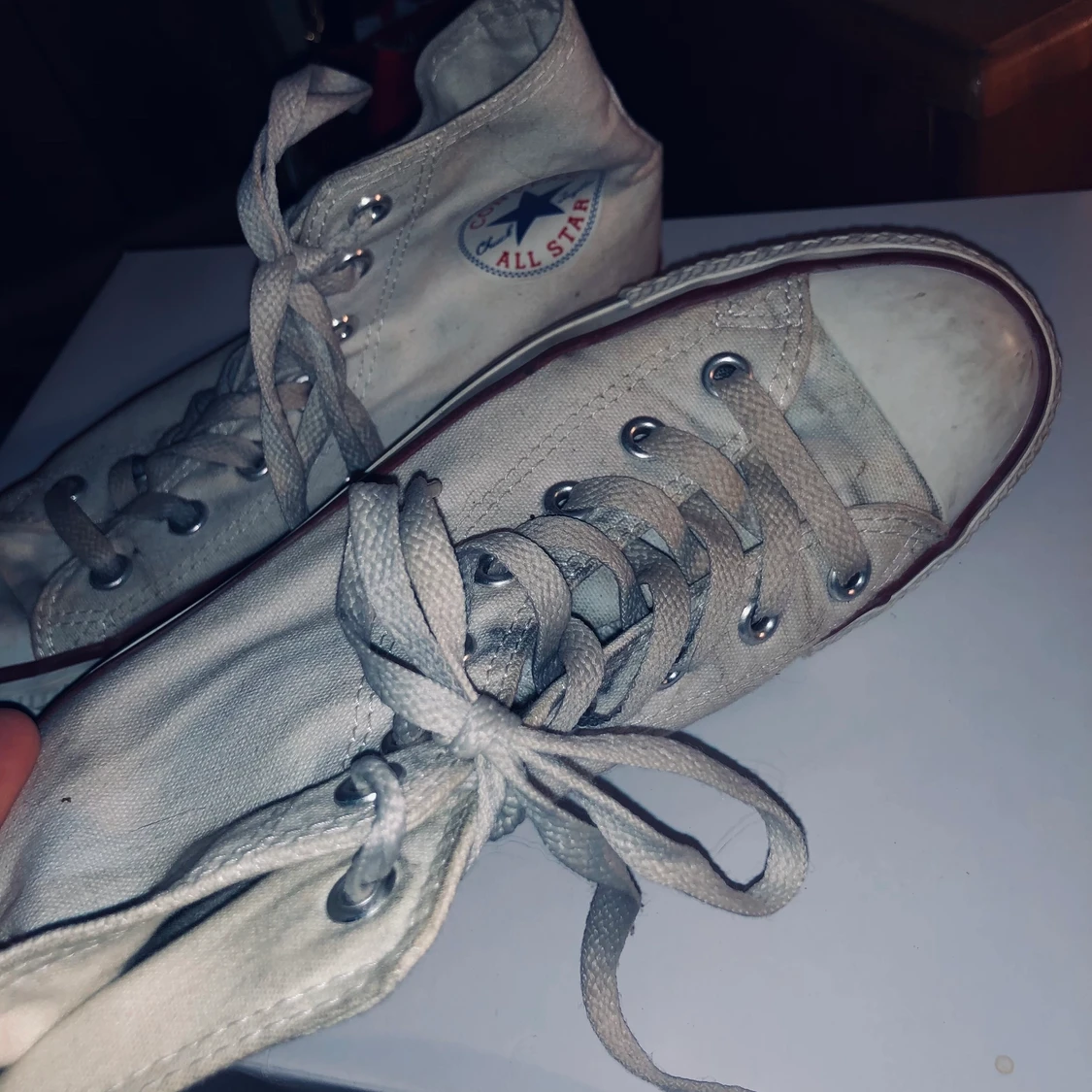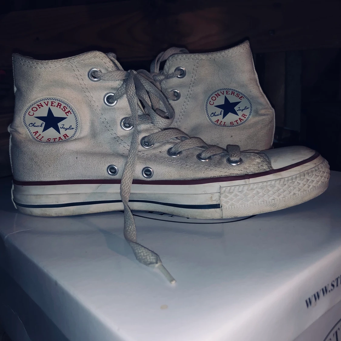 Vita höga converse, har inte provat tvätta dom(!!). Storlek 38. ✨