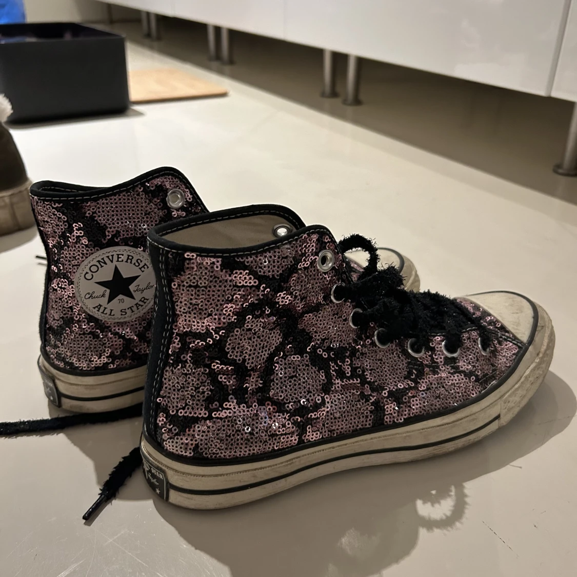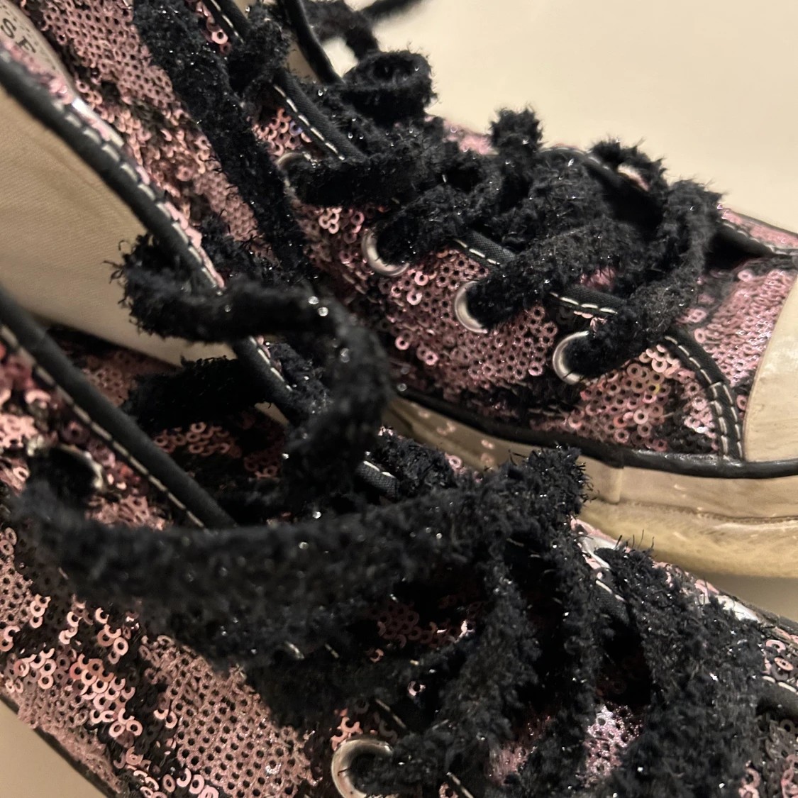 Glittriga converse med glittriga skosnören