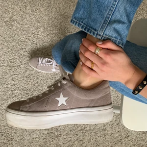 SKITSNYGGA Converse i grå/beige mocka med platå. Helt SLUTSÅLDA och finns inte att köpa. Använda och därför lite smutsiga/skavda på sidorna av sulan. Däremot är jag säker på att det går att tvätta bort om man skrubbar. Mockan är i jättefina skick och utan fläckar eller annat. Nypris ca 900kr. mitt pris 500, eller kom med ett bud!💘💘
