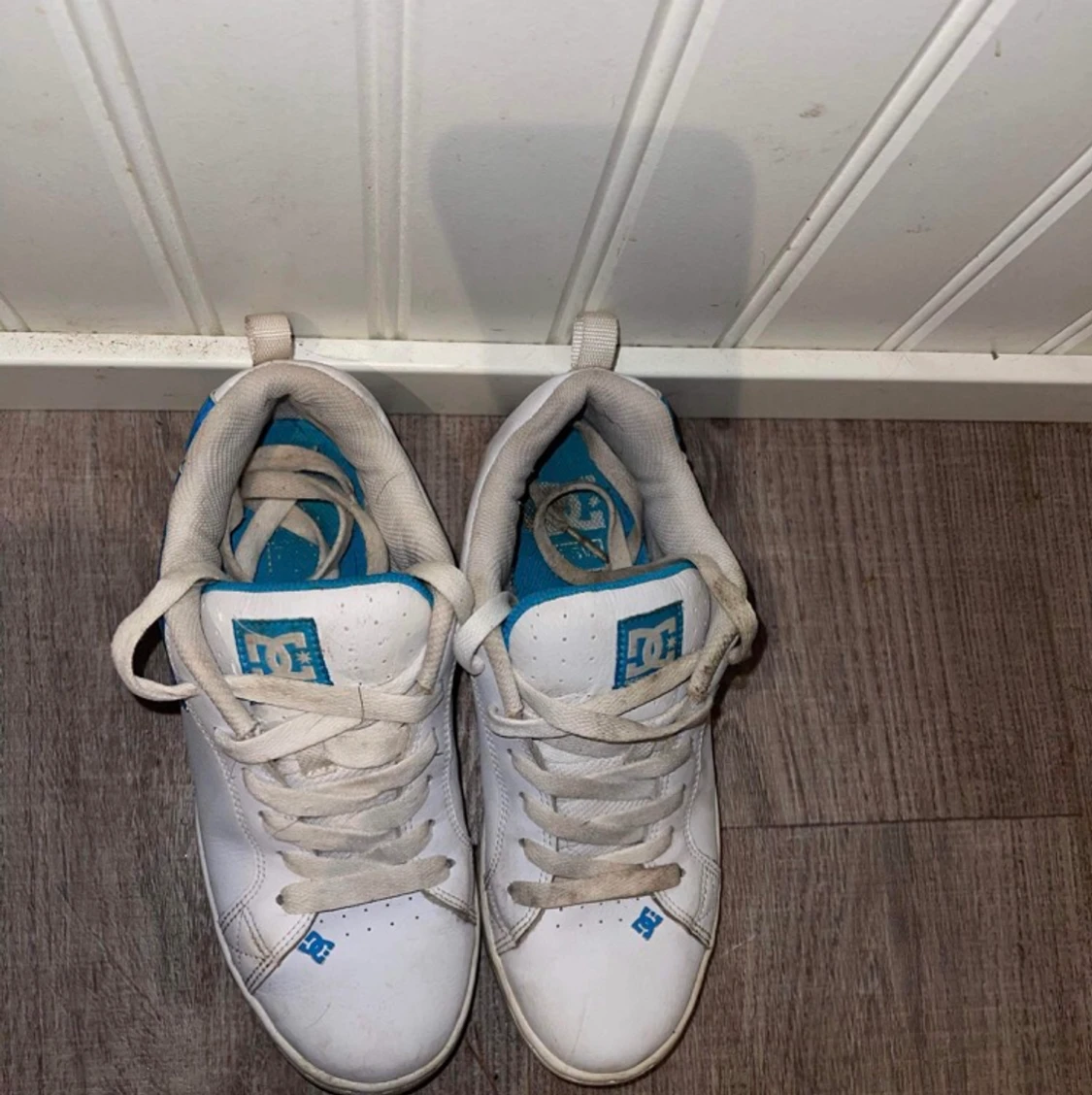 Säljer nu dessa DC skor då jag köpt dom i fel storlek, Storleken är 38,5. Skicket är bra förutom att dom är smutsiga på snörena. Pris + frakt