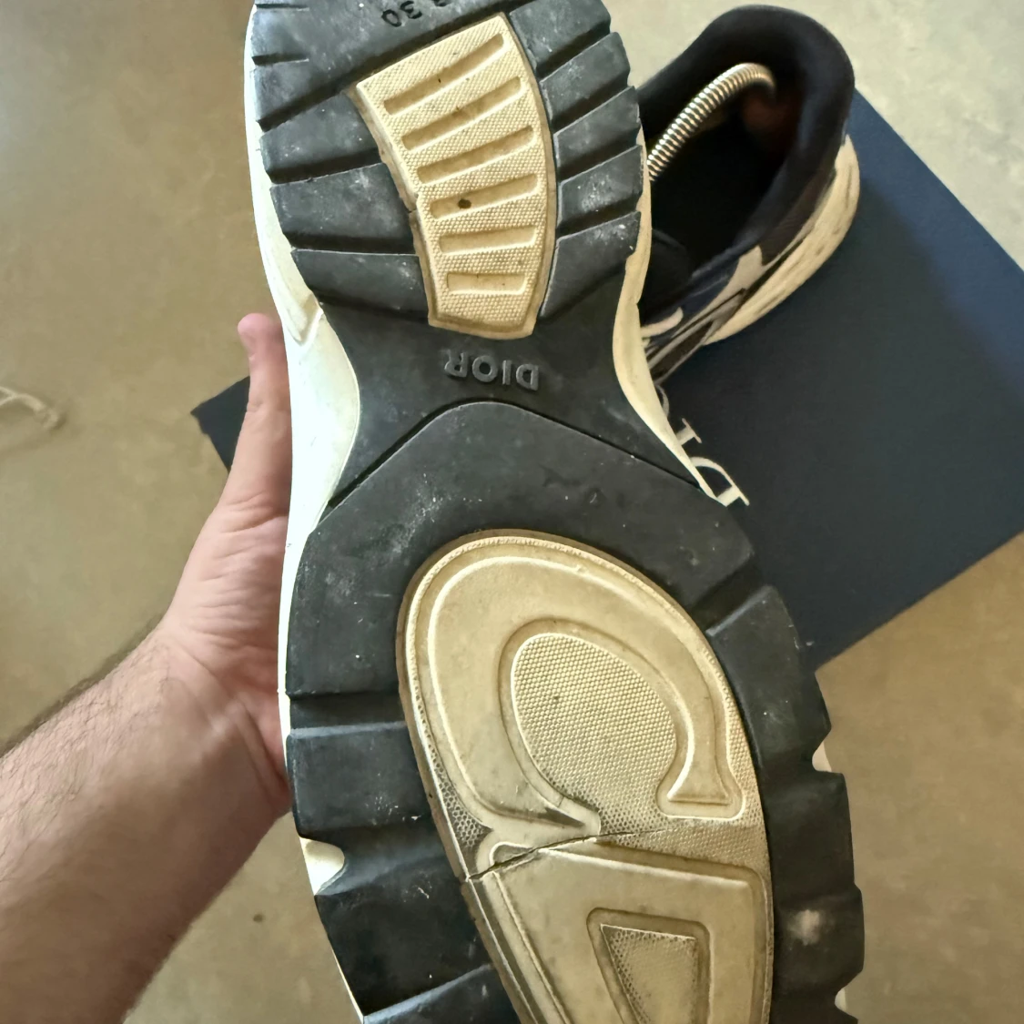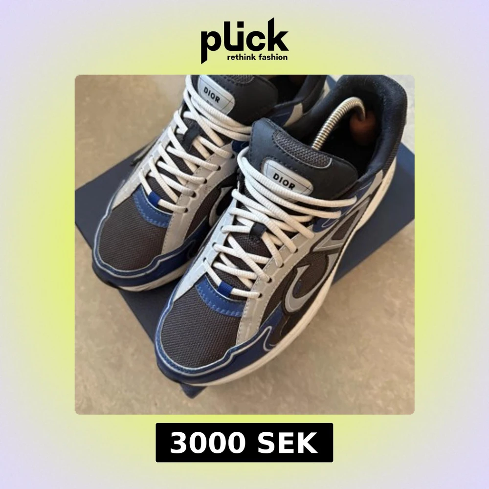 Säljer ett par feta Dior sneakers med coola blå, grå och vita detaljer. Skorna har vit snörning, mesh och skinnpaneler samt en chunky sula. Märket syns tydligt både på plösen och sulan. Perfekta för dig som vill sticka ut med lyxig streetstyle. 7/10 Skick. Vid frågor kontakta mig.