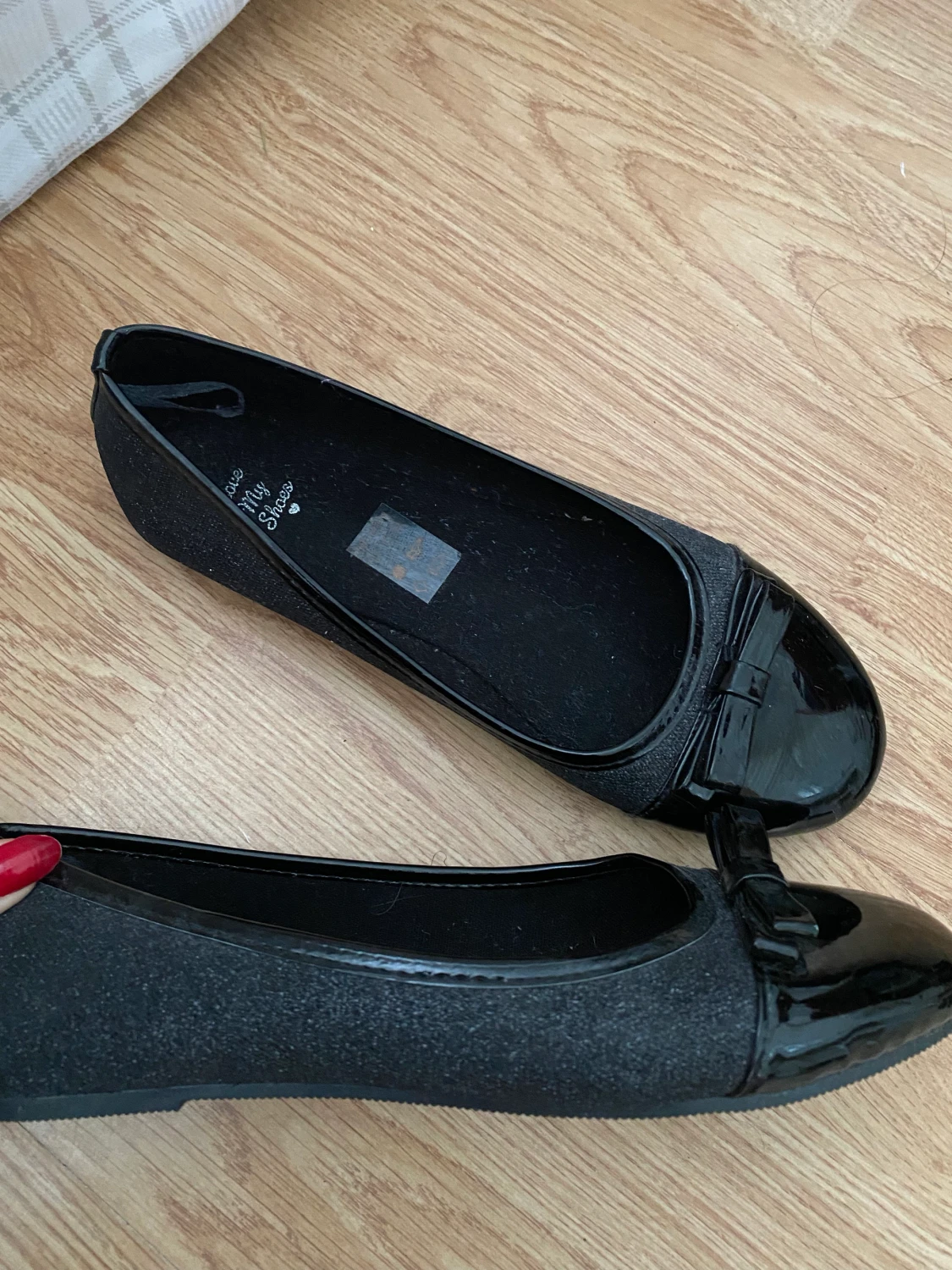 Supergulliga svarta, shimmrande ballerina skor/ballet flats. Perfekta för en dag ute/event och liknande. De är supersköna/oanvända. 💕✨