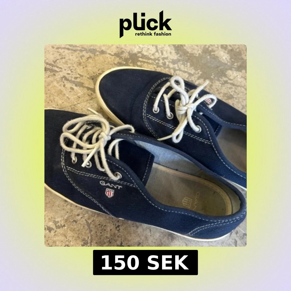 Snygga mörkblå sneakers från Gant i canvas med vita kontrastsömmar och vita snören. Skorna har rund tå, platt sula och Gant-logga broderad på sidan. .