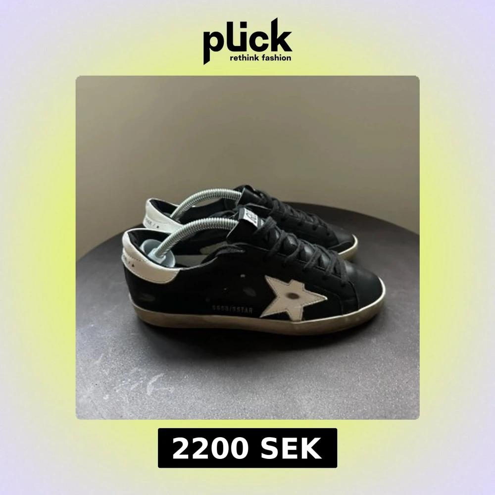 Svarta sneakers från Golden Goose med vit stjärndetalj på sidan och vit häl. Skorna har snörning, platt sula och är tillverkade i skinn. Snygg kontrast mellan svart och vitt, samt diskreta logodetaljer på sidan.